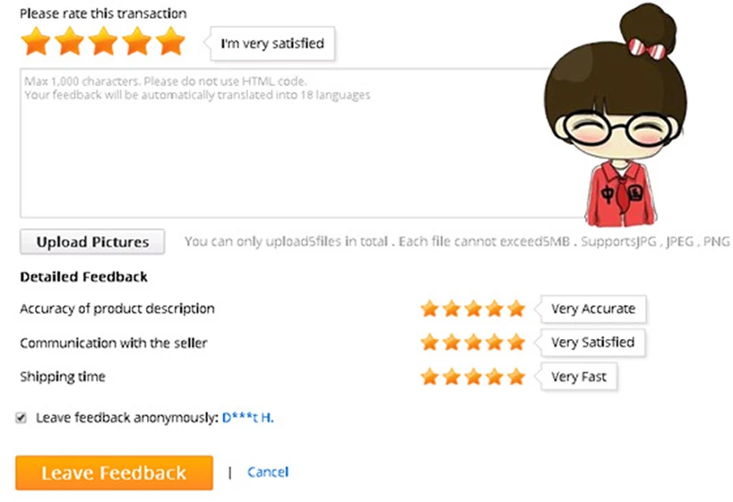 Ваше удовлетворение-это наше вечное стремление. Как показано на следующем рисунке, пожалуйста, поставьте нам 5 звезд, если вы удовлетворены нашими товарами и обслуживанием. Если есть какие-либо вопросы, пожалуйста, не стесняйтесь связаться с нами для исправления. Спасибо!