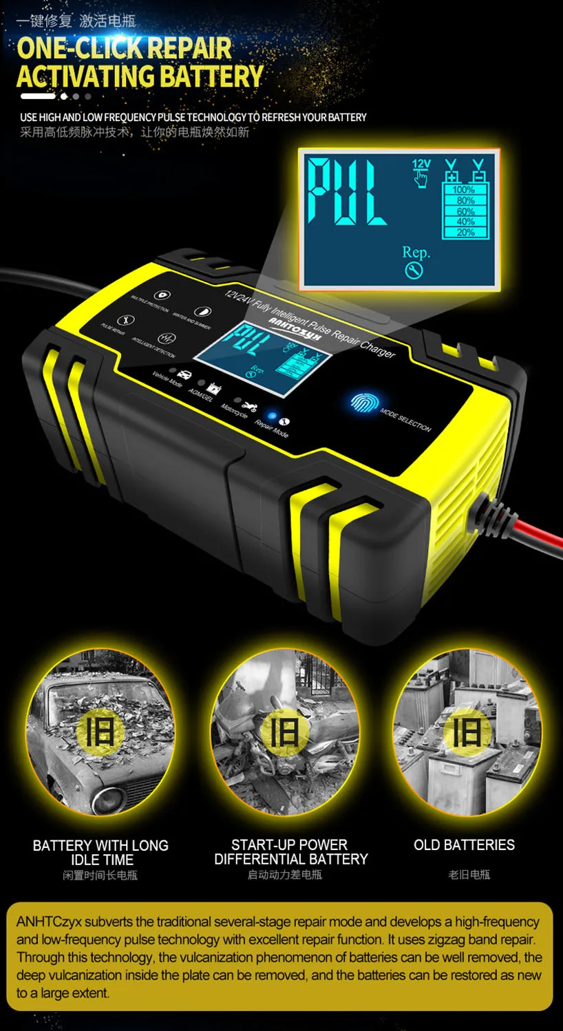 Используйте технологию зарядки Ingelligent High и Low Pulse Repair, десульфатор для ремонта старой батареи, задержка срока службы батареи