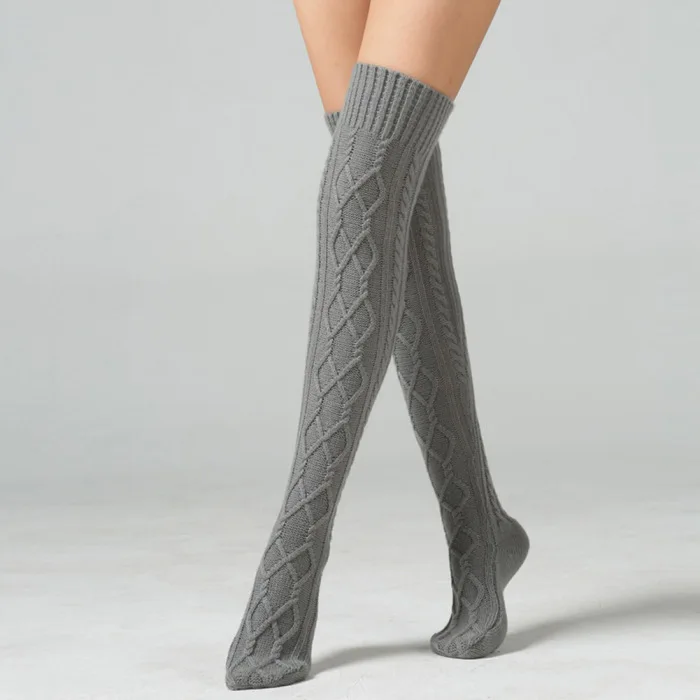 Популярные женские вязаные высокие носки выше колена; Зимние чулки; Гетры; CUN 668