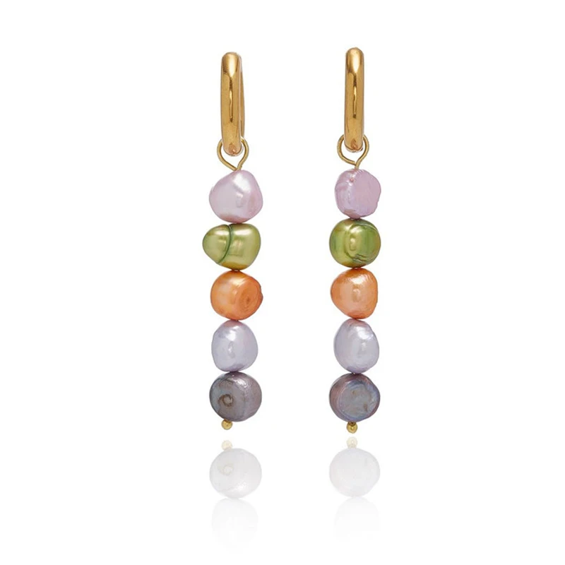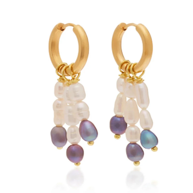 Это серьги из нержавеющей стали, которые не выцветают. Жемчуг-это натуральный пресноводный жемчуг, модные ювелирные изделия в стиле барокко, женские модные серьги.