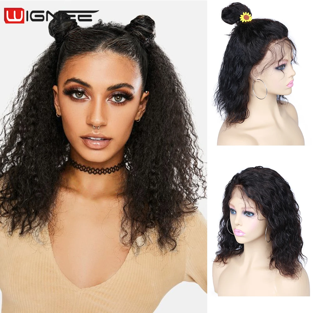 Wignee короткие волосы Боб человеческие волосы парики с детскими волосами для черных женщин кружевные передние натуральные волнистые Remy бразильские бесклеевые человеческие парики