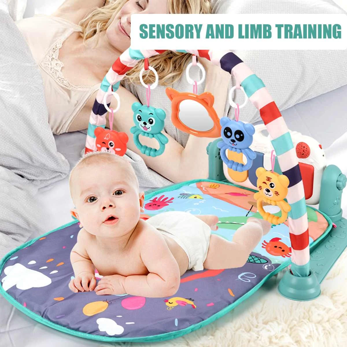 3 в 1, детский коврик для тренажерного зала, для фитнеса, музыки, пианино, подвесной игрушечный проектор, обучающая головоломка, детский коврик