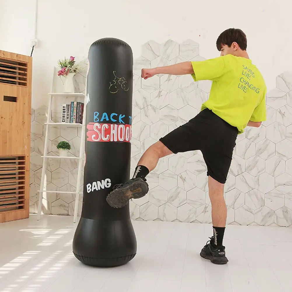 1. Быстрая Скидка: надувной боксерский мешок с песком изготовлен из плотного конструкционного материала ПВХ, имеет размеры 47,2 дюймов/120 см и 59 дюймов/150 см. Он может быстро отскочить и мягкий, отлично подходит для всех, чтобы тренироваться и играть.