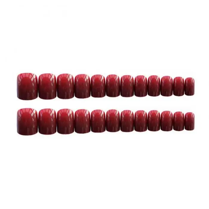 24 шт., элегантный чистый цвет, Короткие накладные ногти, ноские маникюрные украшения, винно-красные короткие накладные ногти с клеем
