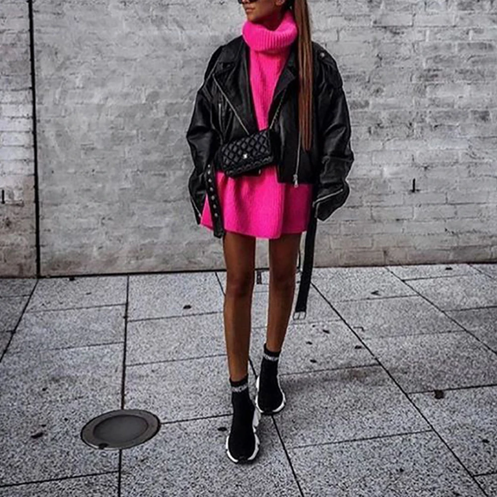 Флуоресцентный цветной вязаный свитер с высоким воротом, Женский неоновый джемпер с длинным рукавом 2020, Модный повседневный приталенный пуловер