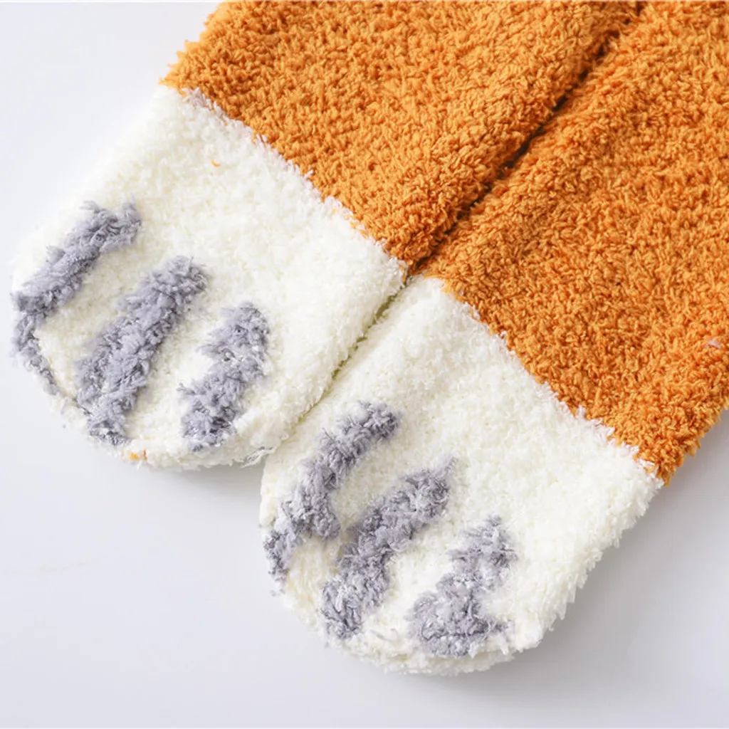 Женские Модные симпатичная кошачья лапа, коралловые утепленные хлопковые носки средней длины