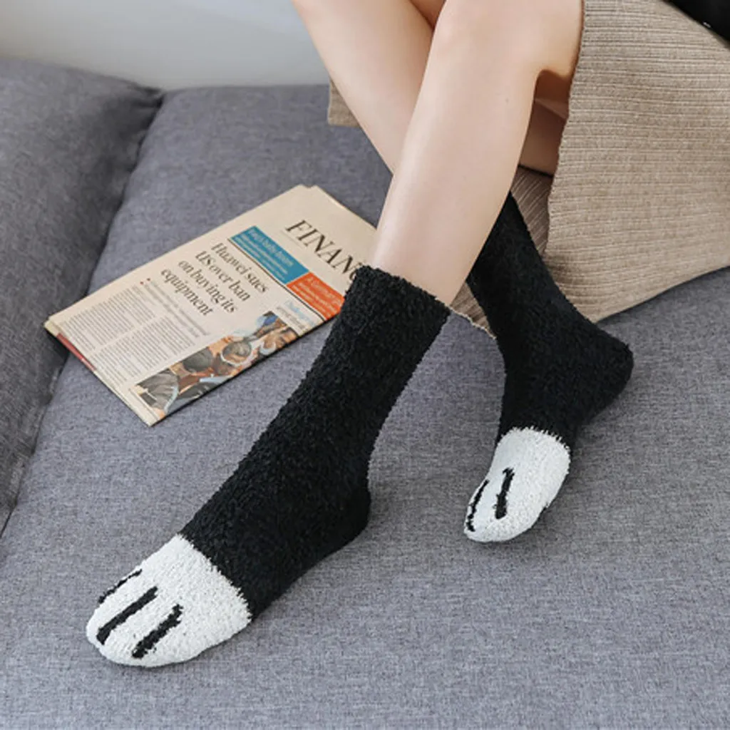 Особенности:MIARHB 6 шт. женские носки, хлопок, зима, Харадзюку, Кошачий коготь, смешной Коралл, уплотненные, высокие, мягкие, пушистые, средней длины, носки-Тапочки