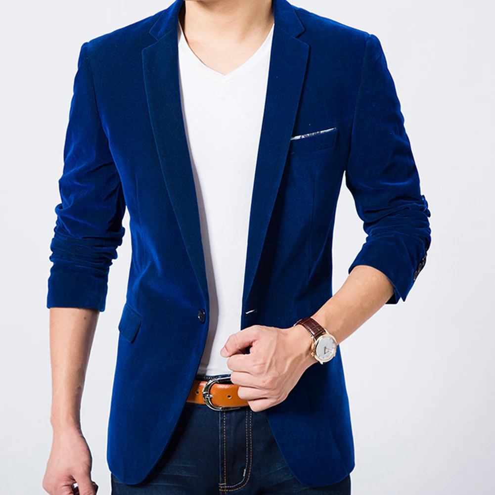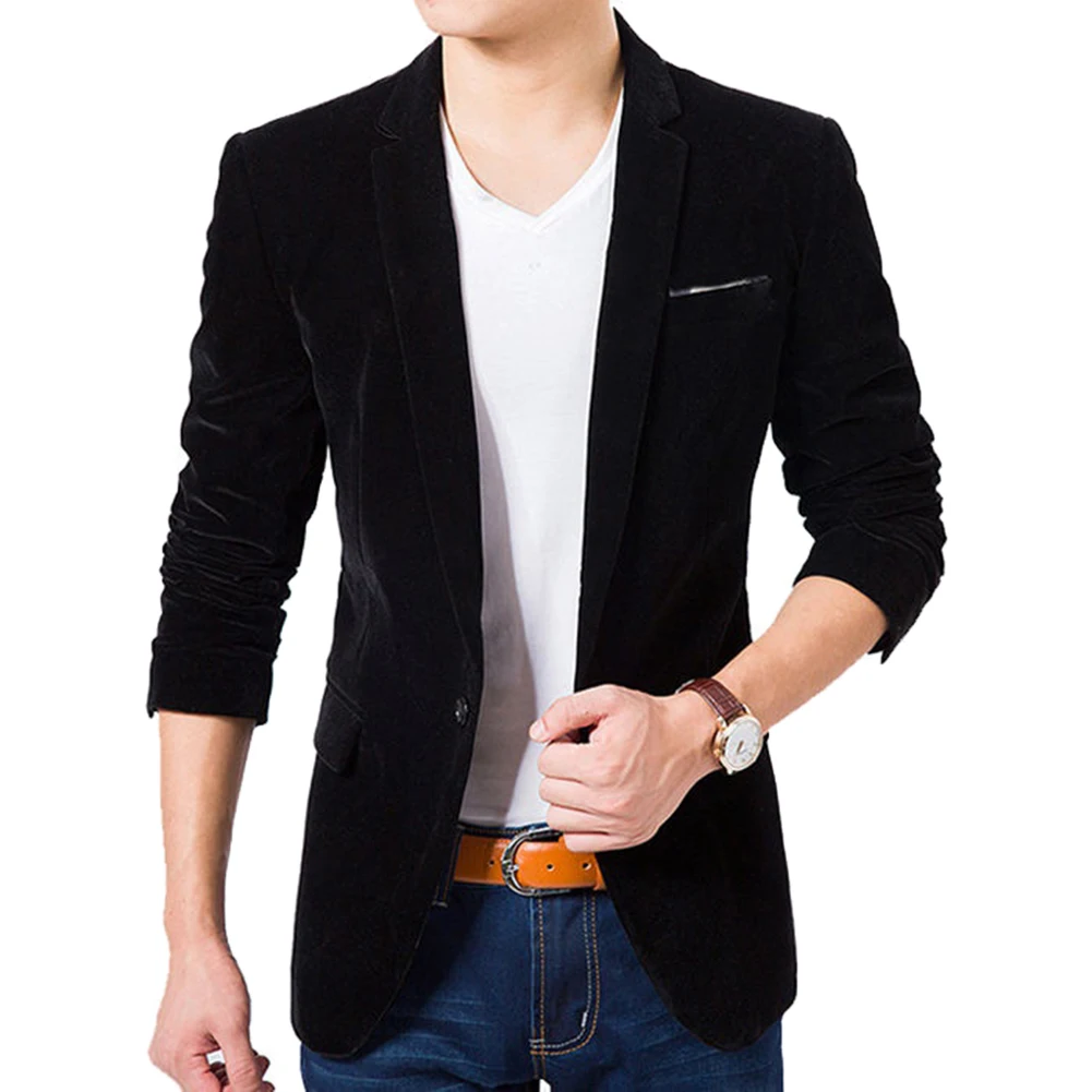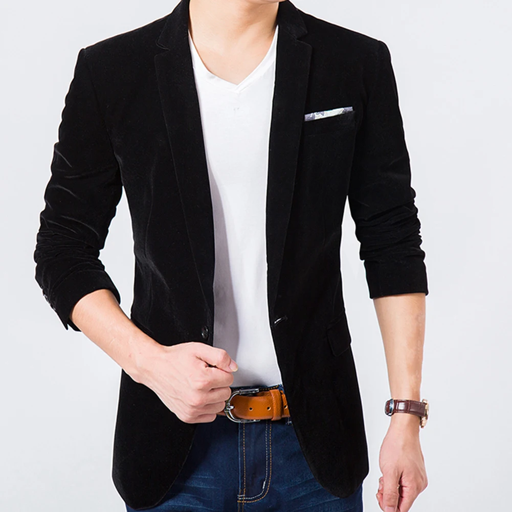 Модный мужской блейзер размера плюс, осенний, длинный рукав, воротник с лацканами, пуговица, карман, Декор, бархат, Тонкий Блейзер, офисный, бизнес, больше размера