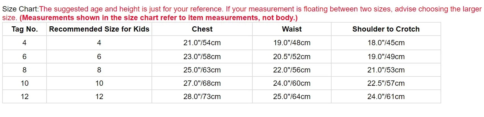 Номер бирки Рекомендуемый размер для детей Грудь Талия От плеча до паха 4. 4. 21,0 "/54 см 19,0 "/48 см 18,0 "/45 см 6 6 23,0 "/58 см 20,5 "/52 см 19,0 "/49 см 8 8 25,0 "/63 см 22,0 "/56 см 21,0 "/53 см 10 10 27,0 "/68 см 24,0 "/60 см 22,5 "/57 см 12 12 28,0 "/73 см 25,0 "/64 см 24,0 "/61 смПолезные советы: Замеры делаются вручную, поэтому учитывайте небольшие погрешности. Цвет на фото может немного отличаться от реального товара из-за особенностей цветопередачи различных мониторов.
