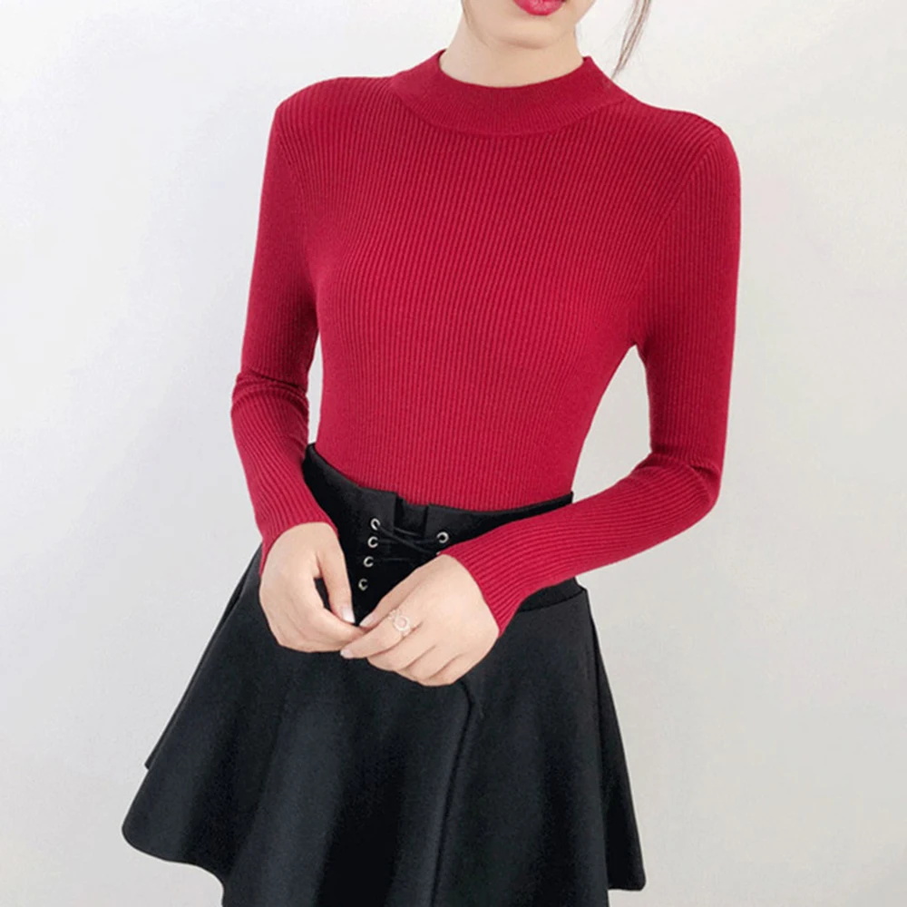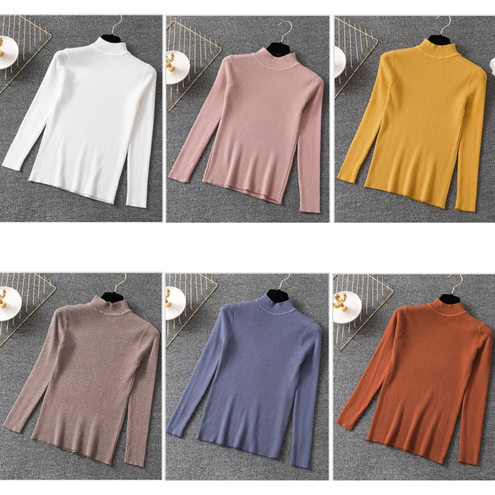 Женский пуловер, свитер, Осень-зима, вязаный, корейский, эластичный, повседневный джемпер, модный, тонкий, водолазка, теплый, женский свитер, топы