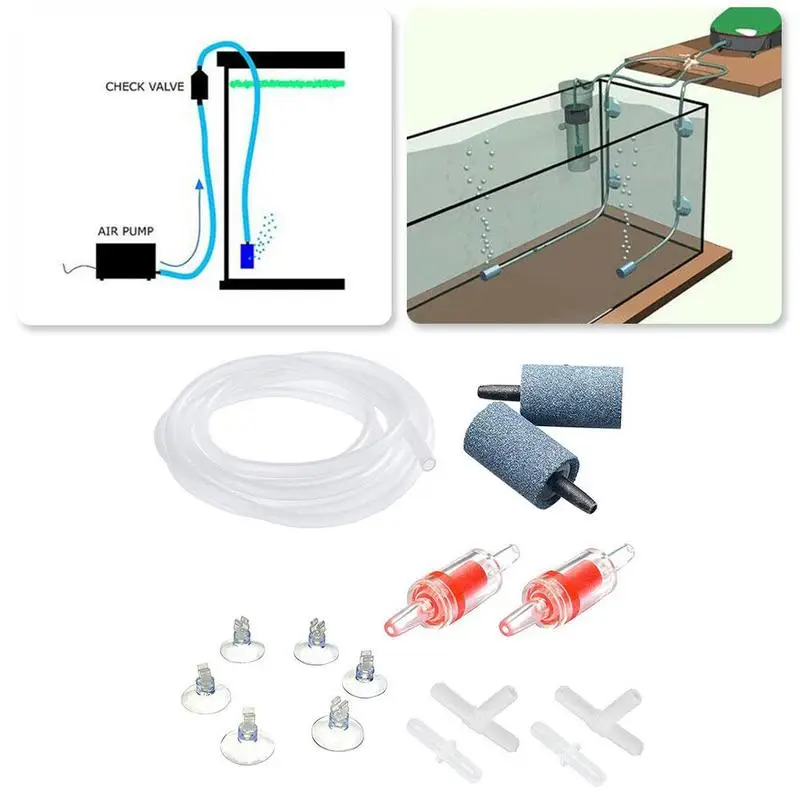 Описание: все в одном посылка-не беспокойтесь о несоответствии-полный стандартный набор аквариумных аксессуаров для большинства брендов воздушных насосов. 13 футов. Воздушная трубка-3/16 дюйма Стандартный ID чистый и гибкий материал. Желаемая длина для большинства аквариумов, не токсичен, белый, гибкий и устойчивый к чернилам. 2 колесика с камерой низкого давления х камня цилиндр-1,2 Дюймов Распылитель может быть легко управляется даже нано воздушные насосы. Подходит для аквариума, аквариума и гидропоники. Измерьте 0,8x1,2 дюйма (Д х В). 6 присосок и 2 обратных клапана-Превосходный 3/16 дюймовый ID стандартный держатель авиационной трубки, плотно приклеивается к гладкому аквариуму. Красный прозрачный клапан может предотвратить попадание воды обратно. 4 разъема (прямые и Т-образные)-идеально соединяют Стандартные Трубки, Т-образный соединитель позволяет комбинировать два входа для создания Одного выхода с двумя выпускными насосами. Посылка включает в себя: 1 воздушная трубка (13 футов; 3/16) 2 воздушных камня 2 обратного клапана 6 присосок 2 Т-коннектора 2 прямых разъема