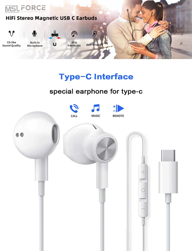 MSL USB C наушники используют новейший обновленный чип DAC, который может преобразовывать аудио стандартного разрешения в превосходное аудио без потерь. И улучшенные наушники с шумоподавлением типа c делают музыку идеально завернутой в ухо, чтобы вы могли легко наслаждаться прослушиванием в целом.