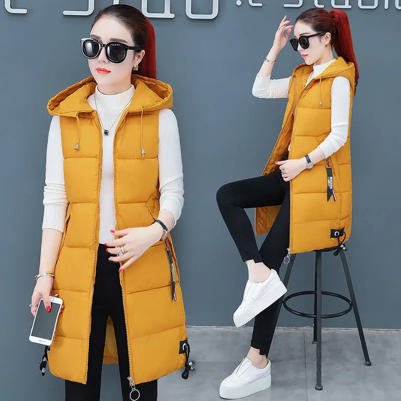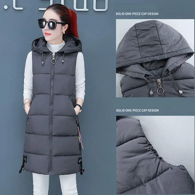 Длинный пуховый жилет женская верхняя одежда Зимний женский пуховый жилет Модный женский жилет без рукавов с капюшоном с подогревом капюшон Повседневная теплая одежда