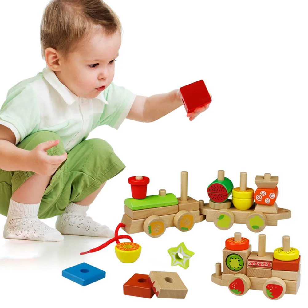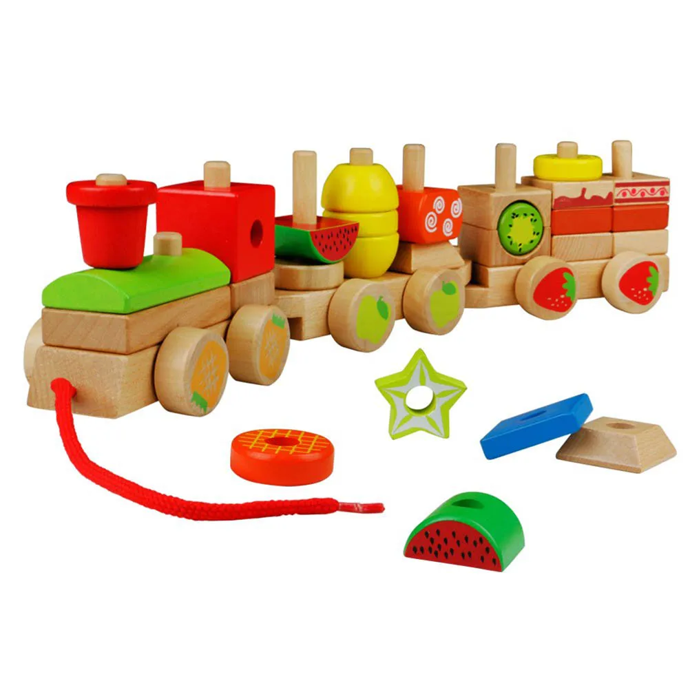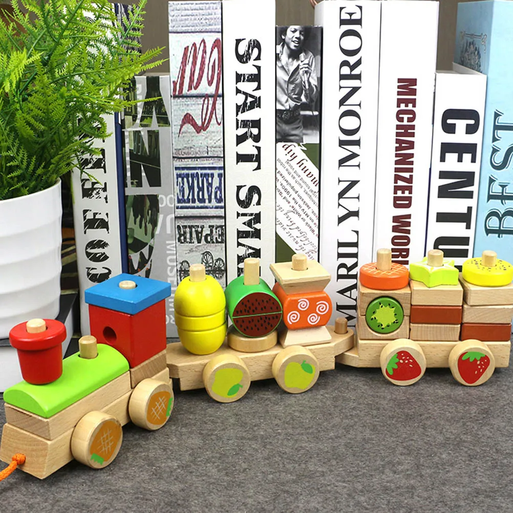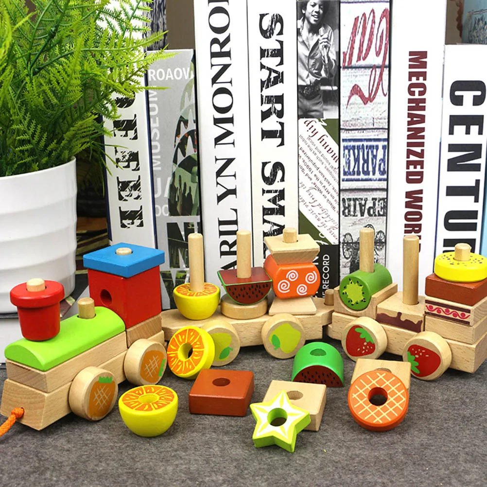 1 Набор деревянный фруктовый поезд Игрушка Дети Красочные строительные блоки игрушки для От 1 до 3 лет детей новогодние подарки