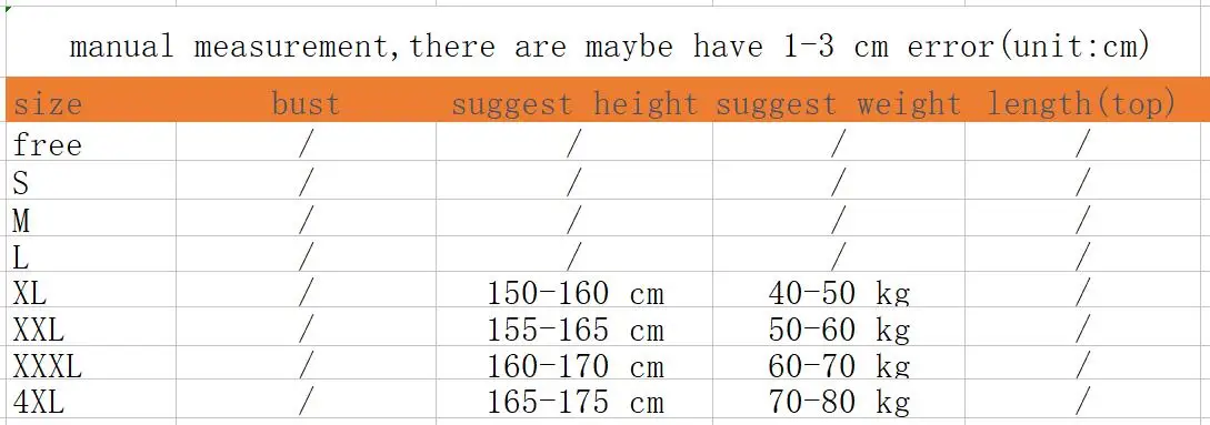 Таблица размеров
