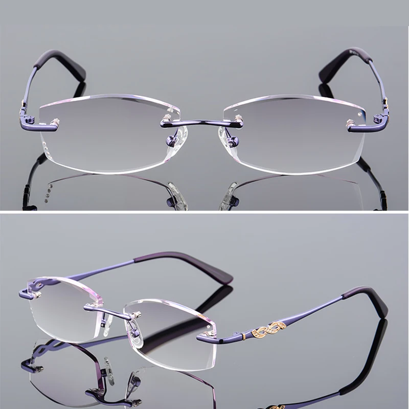 Фиолетовые женские Стразы, очки пресбиопии, высокое качество, алмазная резка, очки для чтения, без оправы, увеличительные защитные очки