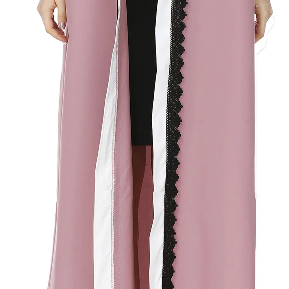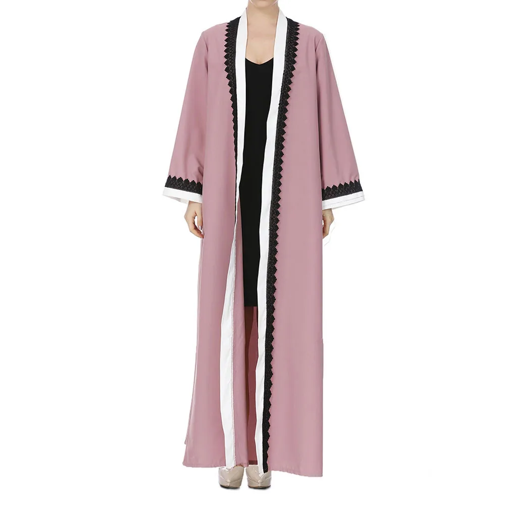 Для женщин кимоно Мусульманский мусульманский Кафтан Макси с открытым кружевом, свободный халат