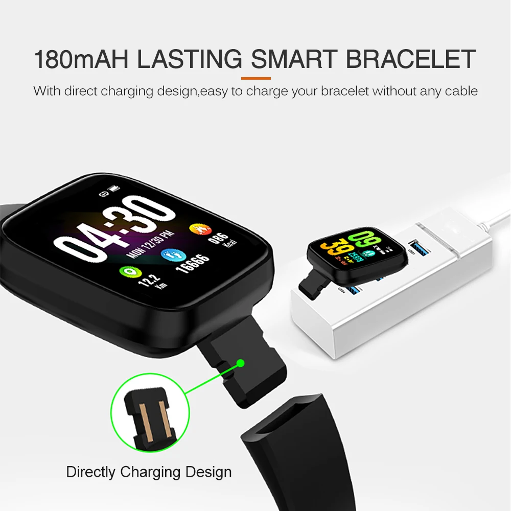 Водонепроницаемый и долговечный умный Браслет IP67: водонепроницаемый браслет IP67 защищает ваши часы при мытье рук и попадании под дождь. (Не замачивайте в воду и не носите во время плавания.) Аккумулятор емкостью 180 мАч работает 7 дней после полной зарядки.