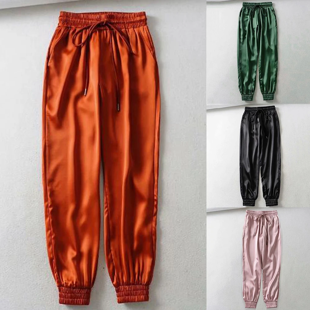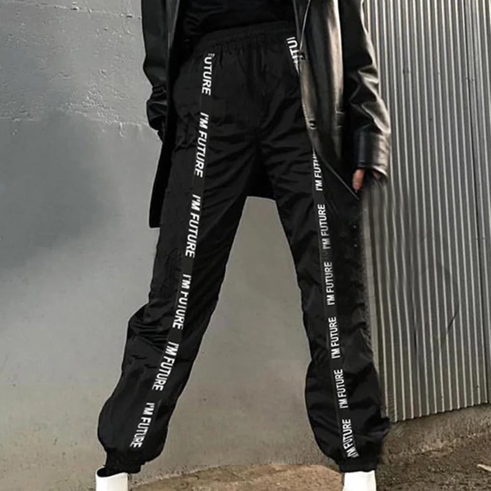 MoneRffi атласные брюки карго с буквенным принтом женские повседневные свободные спортивные брюки с лентой BF Harajuku джоггеры уличные женские спортивные брюки