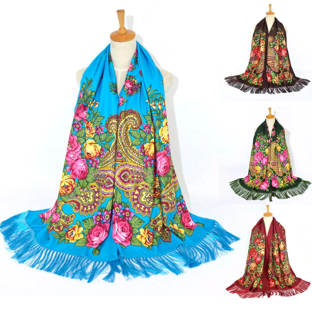 Женский квадратный шарф с принтом в народном стиле, платок для путешествий