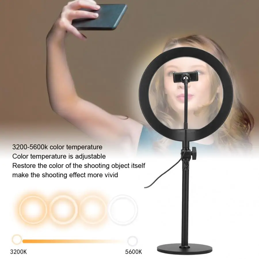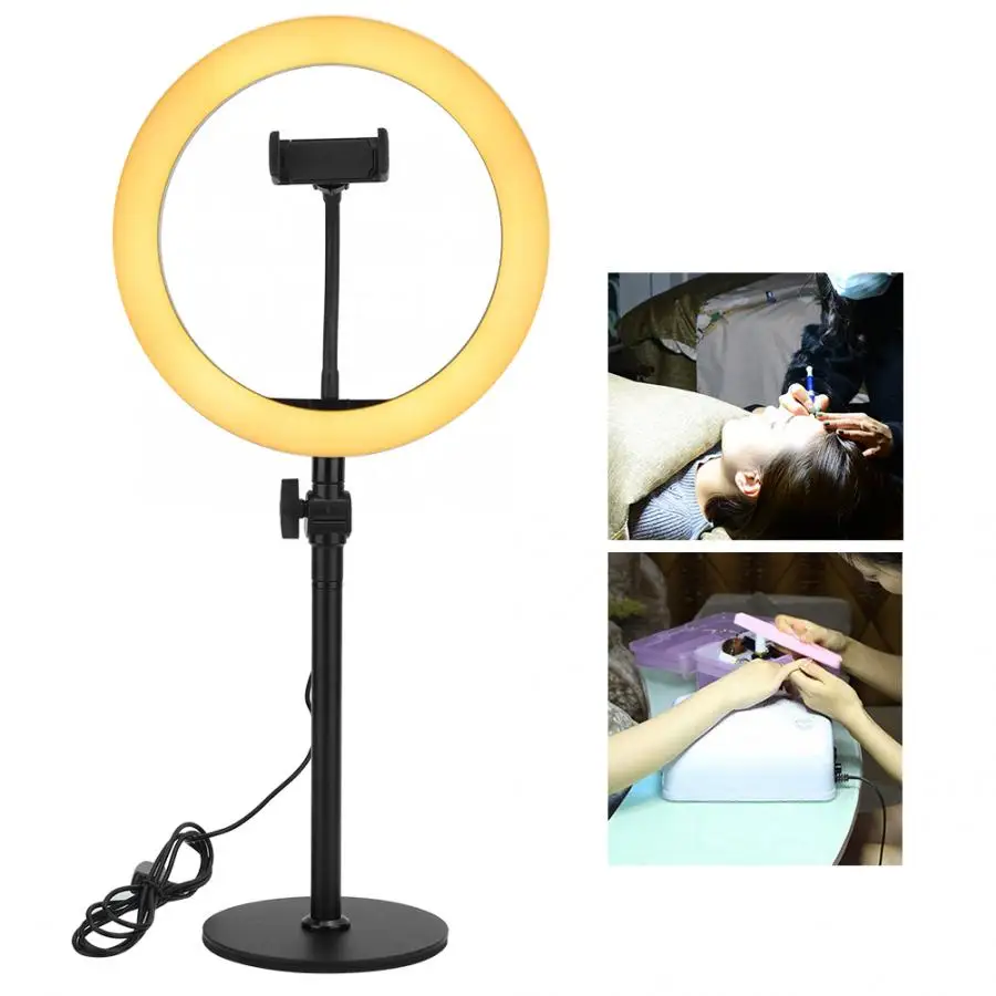 Светодиодный потоковый кольцевой светильник для студийной фотосъемки салон красоты тату дизайн ногтей заполняющий светильник (черный) с держателем на мобильный телефон