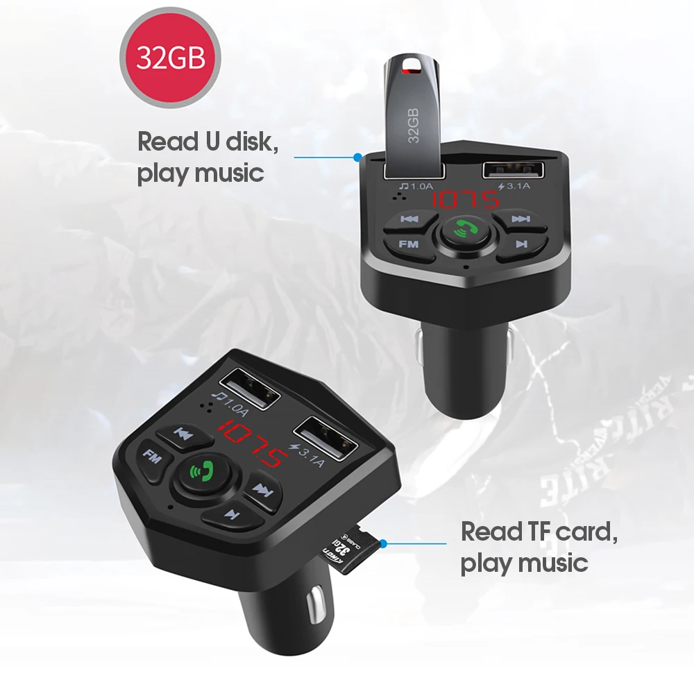 Технические характеристики:Версия Bluetooth: 5,0Память Поддержка: до 32 ГбМощность режим: 12V-24V Мощность питанияОтношение сигнал-шум: 85dBAДиапазон частот FM: 87,5-108 МГцСтарт расстояние: 5 мОсобенности:Поддержка FM каналов, автомобильный Bluetooth FM передатчик позволяет вам наслаждаться музыкой во время вождения и воспроизводит громкий и четкий телефон навигационный голос на автомагнитоле.Поддержка Bluetooth и системой «Хендс-фри» для звонков через встроенный микрофон, просто нажмите кнопку, чтобы отвечать на телефонные звонки, очень удобный и сохранить вашу безопасность вождения.Поддержка TF карты и USB флеш-накопитель для чтения (до 32 ГБ макс), можно воспроизводить музыкальные файлы на FLAC/MP3/WMA/WAV.Двойные usb-порты с макс. 5 В/3.1A выход, поддержка смарт-зарядки, автоматически определить все виды из мобильные телефоны/Планшеты/mp3 / mp4, Обеспечивайте и выводите лучший и самый быстрый зарядный ток никель-металл.Поддержка функции вольтметра, на экране отобразится напряжение аккумулятора автомобиля в тех случаях, когда это включаться.Встроенный интеллигентая (ый) чип управления, эффективно предотвратить Защита от превышения температуры, защита от перенапряжения, перегрузки по току, короткого замыкания и электромагнитные помехи.Постоянный ток 12-24V входное напряжение, подходит для всех транспортных средств, подходит для большинства автомобилей, грузовых автомобилей, внедорожных и т. д.Посылка включает в себя:1 x Автомобильный MP3-плеер