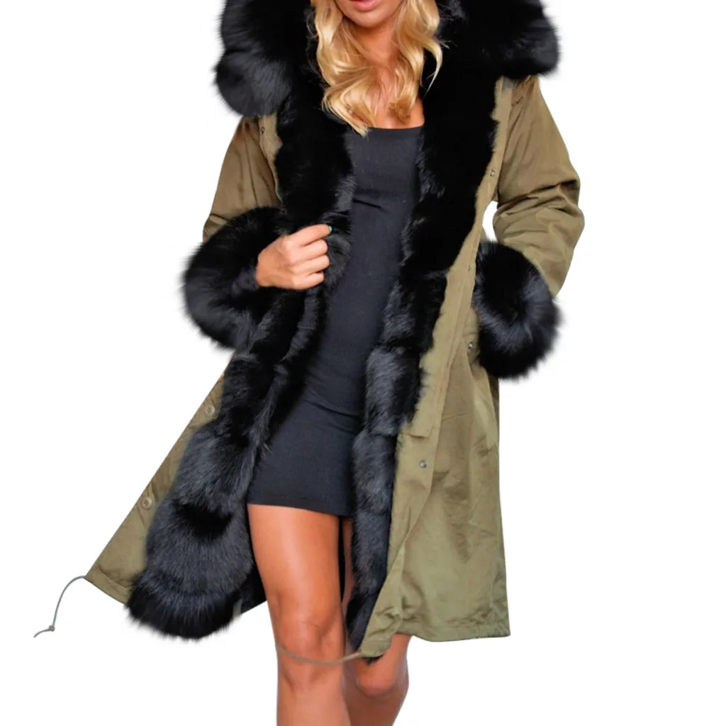 Женская зимняя куртка с капюшоном и меховым воротником, плотная теплая Длинная ветровка, верхняя одежда, пальто