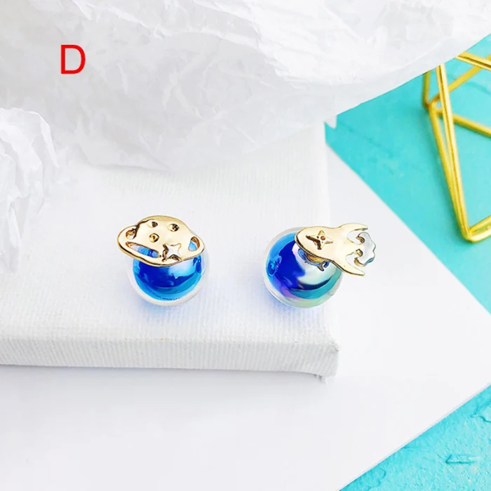 Описание Новые женские серьги-гвоздики с голубыми планетами Звезда Луна и Вселенная самолеты женские стильные серьги DO99Особенности: