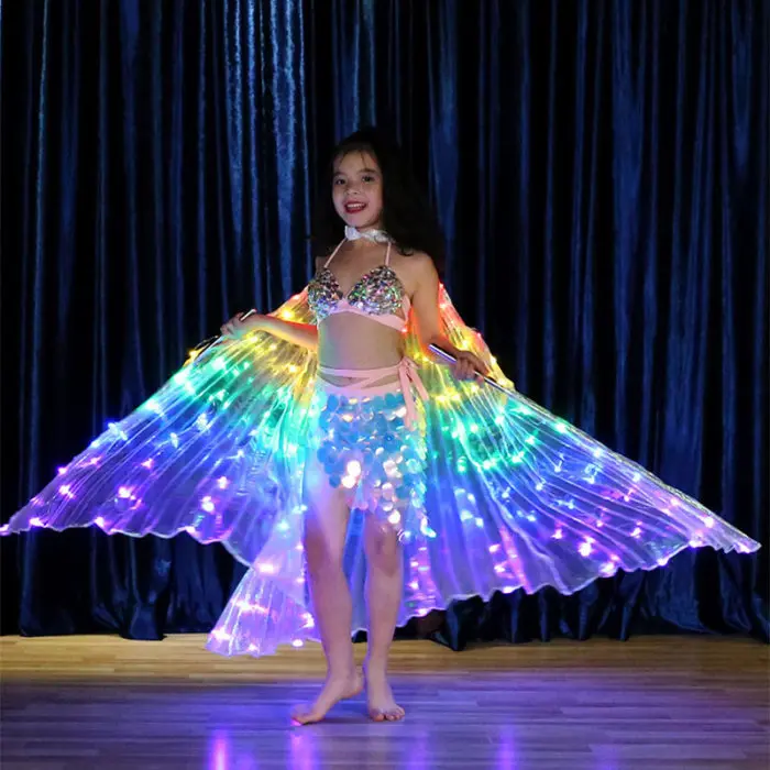 Новый костюм с крыльями радуги и светодиодной бабочкой; Шаль; Сказочная одежда для выступлений для детей; m99