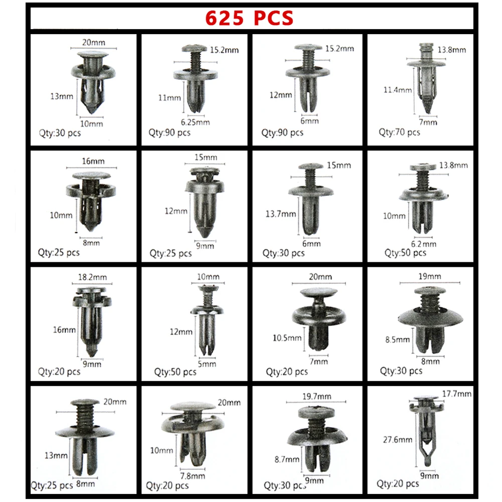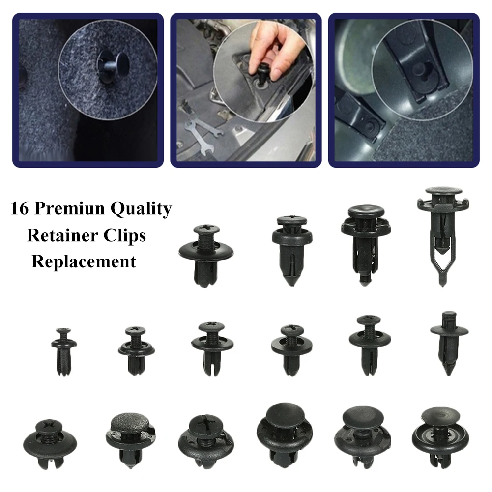 * Универсальный комплект-отличный ассортимент, Набор фиксаторов с 16 наиболее популярными размерами, фитинг для отделки дверей, решетка радиатора, крыло, бампер, боковая юбка, решетка, крышка двигателя и защита от брызг замена, Совместимость с Ford, GM, Chrysler, Toyota, Honda и многое другое. Все упаковано в пластиковый контейнер для легкой организации и хранения.