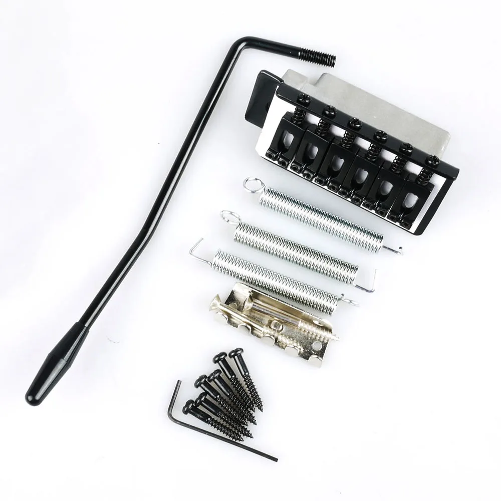 100% новое и высокое качество Этот мост используется для электрогитары strat. Материал: металл Цвет: черный Включает один мост, коготь, пружины, винты, тремоло бар Посылка включает в себя: 1 комплект электрогитары тремоло мост. (В том числе: 1x мост 1x коготь 3x пружины 8x винты 1x тремоло бар)