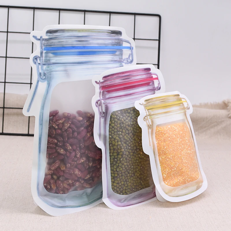 20 шт PE Mason Jar форма бутылки сумки на молнии Многоразовые гайки закуска уплотнение мешок конфеты печенье хранения дома кухни упаковки еды поставщик