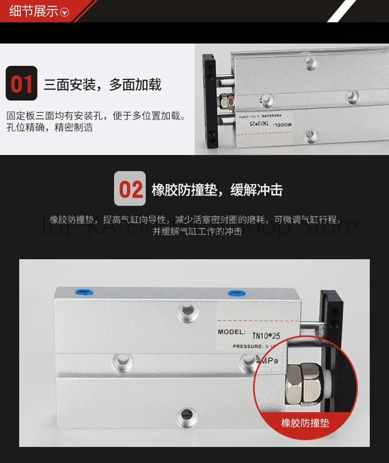 Параметры: Наименование товара: пневматический цилиндр Материал: Алюминий из алюминиевого сплава Модель: TN Тип Диаметр: 10 мм Ход: 10/15/20/25/30/35/40/45/50/60/70/80/90/100/125/150 мм Рабочая температура:-20 ~ 70 градусов Рабочее давление: 0,1-МПа (14 ~ 145psi) Рабочая среда: воздух Посылка: 1 шт.