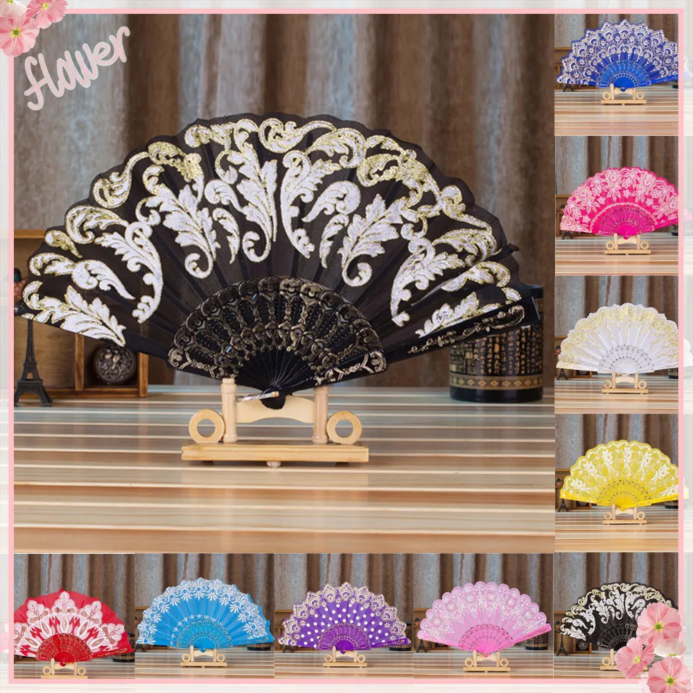 Китайский/Испанский Стиль Танцевальная Свадебная вечеринка кружева Шелковый складной ручной цветок Вентилятор