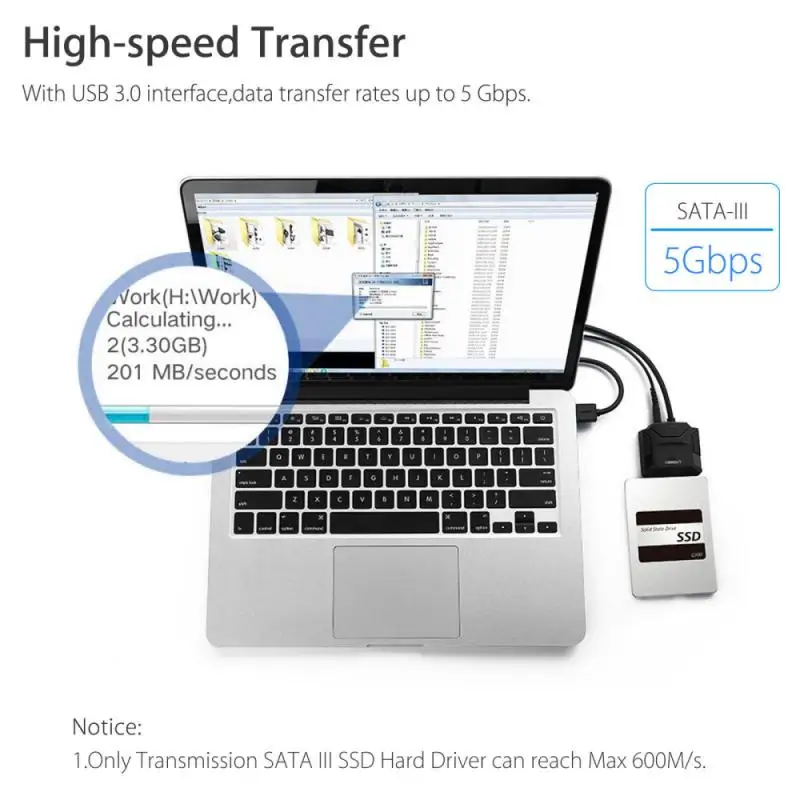 USB 3,0 высокая скорость передачи данных, совместимый с 2,0 интерфейс, может быть непосредственно подключенный к интерфейсу SATA 2,5 дюймов ноутбук жесткий диск (не может быть использован на рабочем столе жесткий диск) так что ваш жесткий диск ноутбука сразу же станет высокоскоростным мобильным жестким диском USB 3,0, Обычные приложения подключаются только к интерфейсу USB 3,0, если какой-то отдельный жесткий диск высокой мощности не работает, а затем подключите к отдельной линии питания, и вы сможете работать.