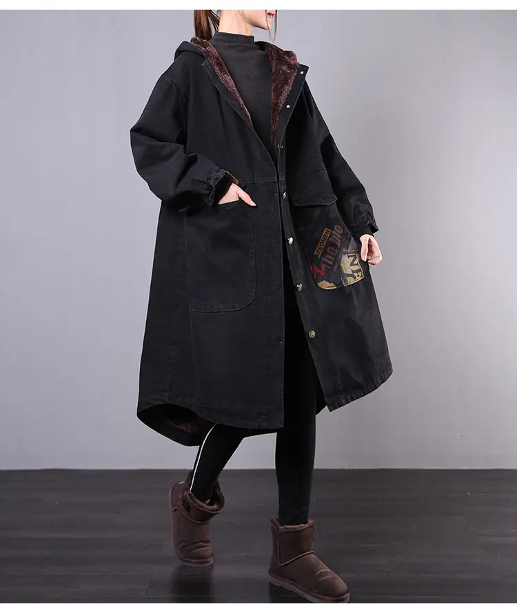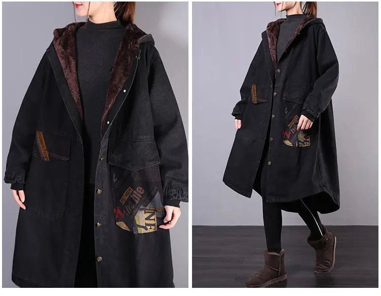 Корейская мода с капюшоном винтажные джинсовые стеганые пальто