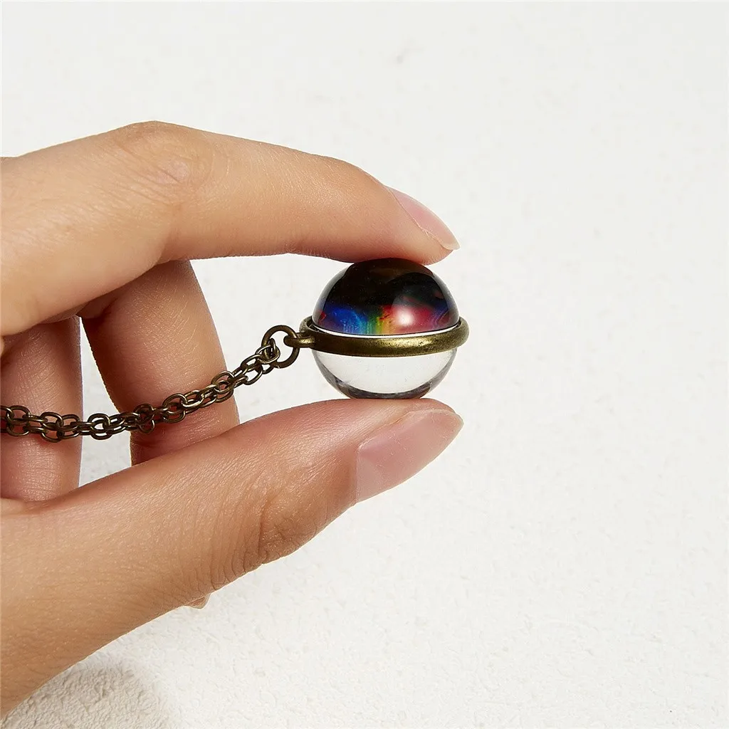 Светящаяся в темноте система галактики Двусторонняя стеклянная купольная планета ожерелье подвеска