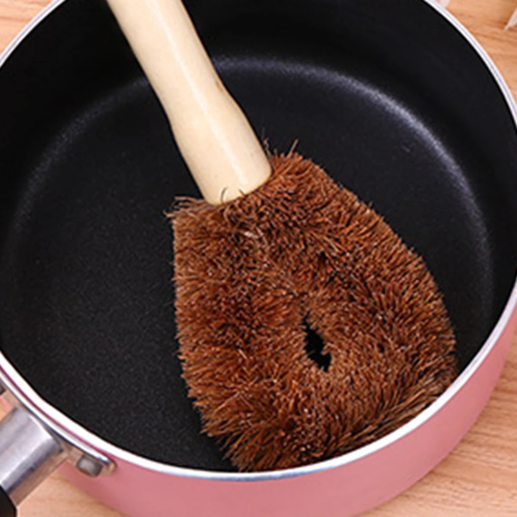 Кокосовая посуда из волокна с длинной ручкой легко очищает тарелки, миски, чашки, кружки и другие посуда и изделия из стекла.