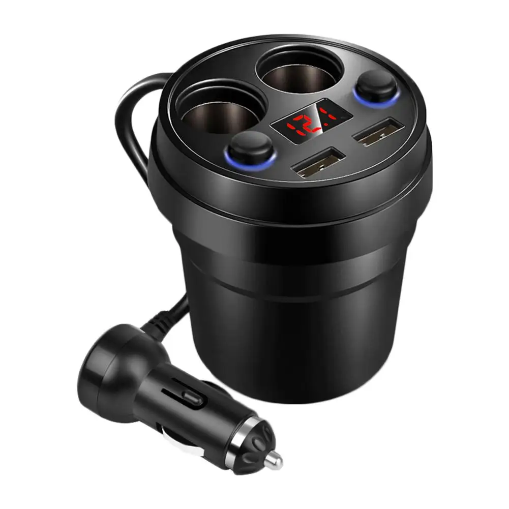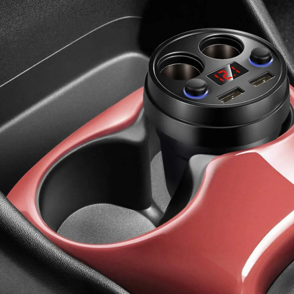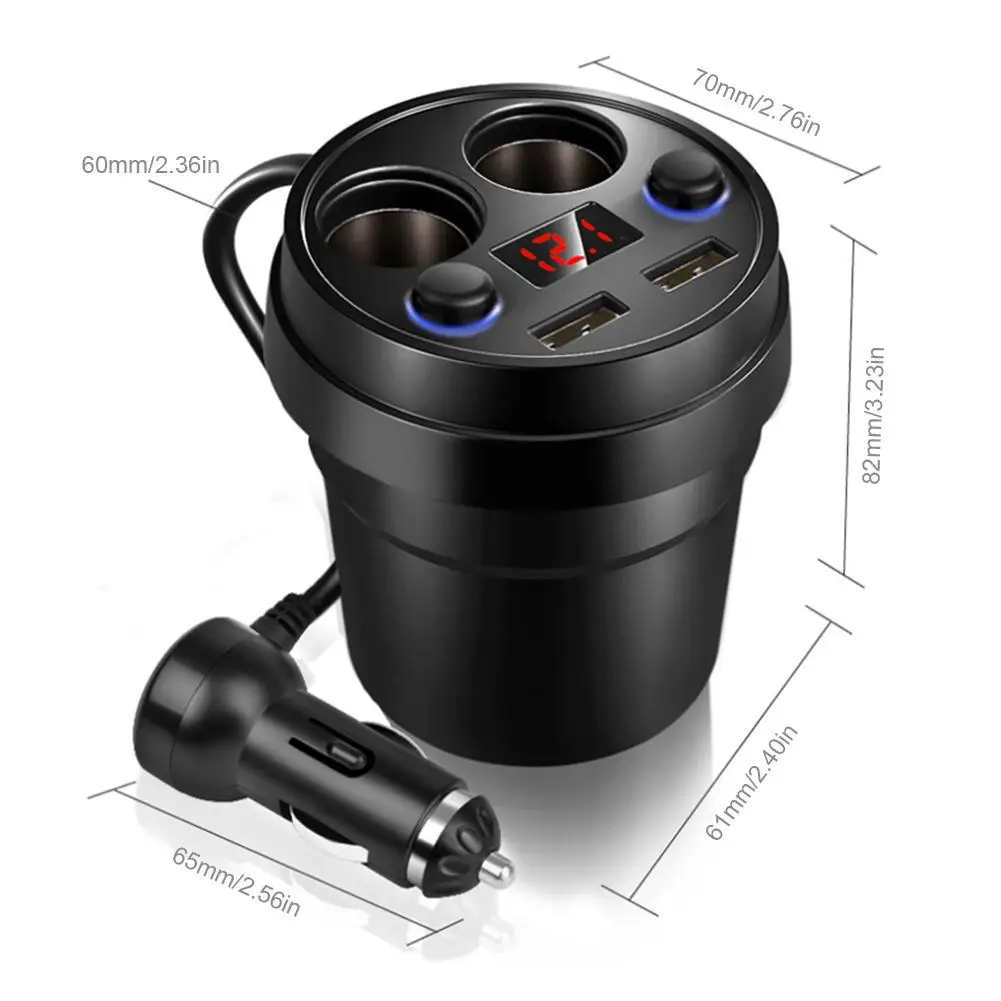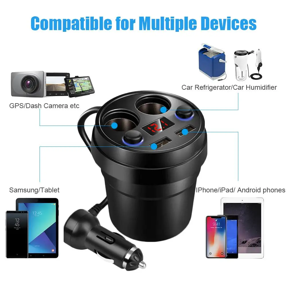 1 、 Sleek Чашеобразный дизайн: 2-гнездо прикуривателя адаптер предназначен для использования в автомобиле, держатель для чая, экономить место и делает ваш автомобиль намного аккуратнее. Он функционирует как идеальный зарядный концентратор на ходу, может одновременно заряжать телефоны или другие устройства как для вас, так и для ваших семей даже на заднем сиденье, предотвращая раздражение грязными кабелями и адаптерами зарядного устройства.