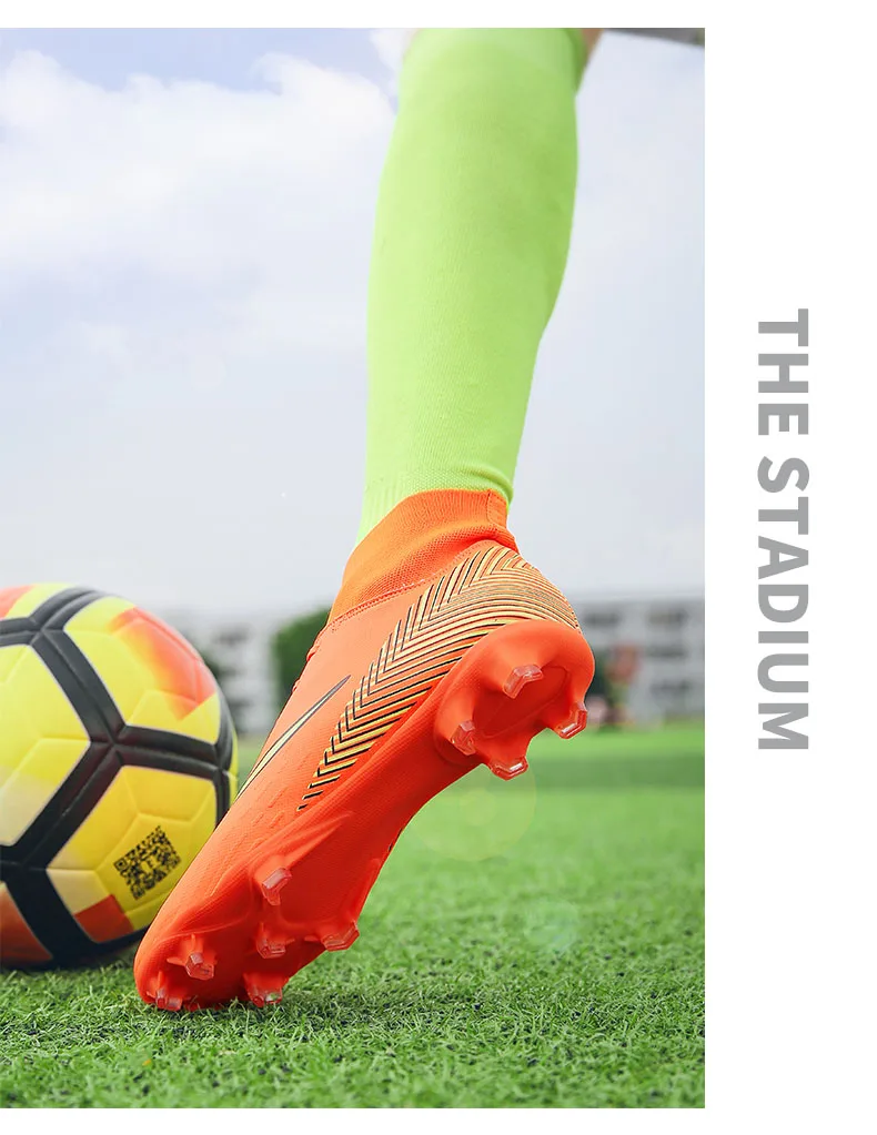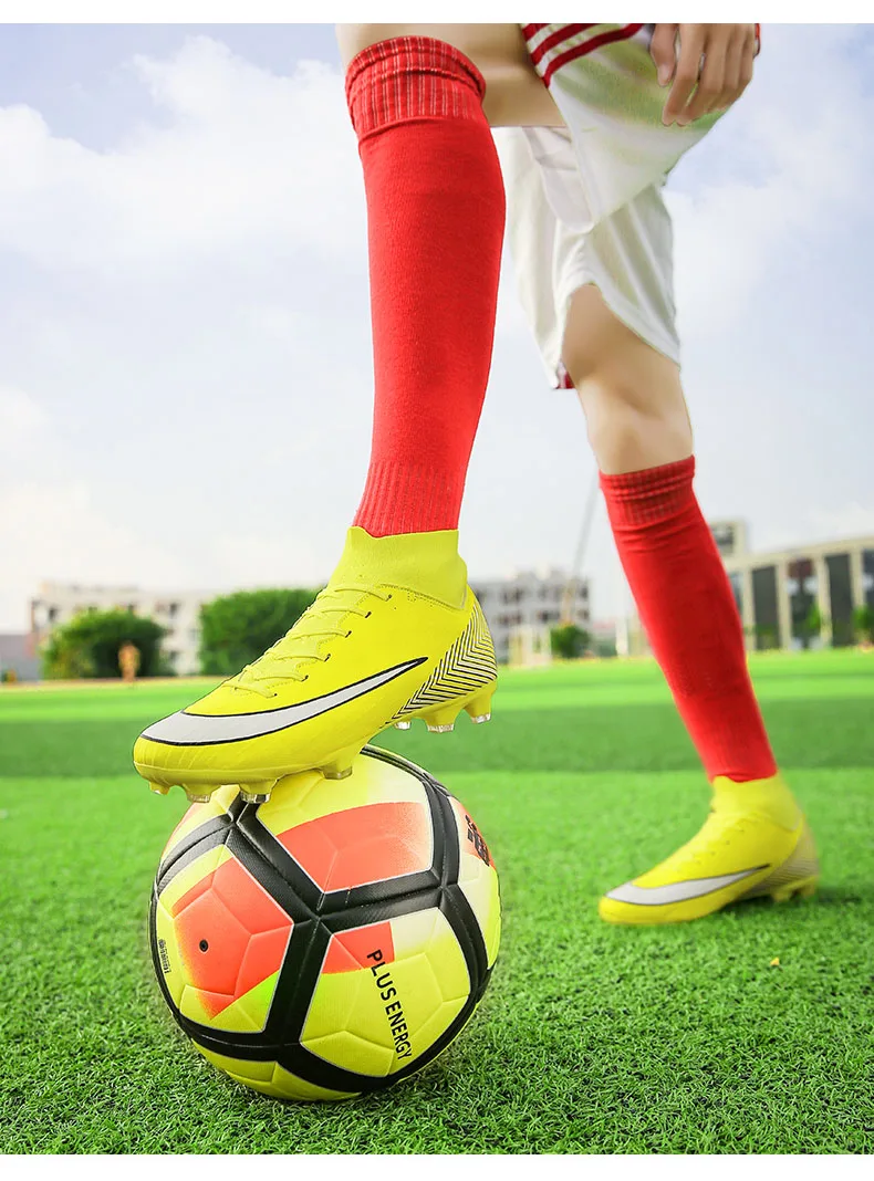 Мужские футбольные кроссовки с высоким берцем, профессиональные кроссовки, новый дизайн, мужские длинные шипы, футбольные кроссовки Chuteira Futebol