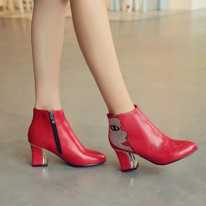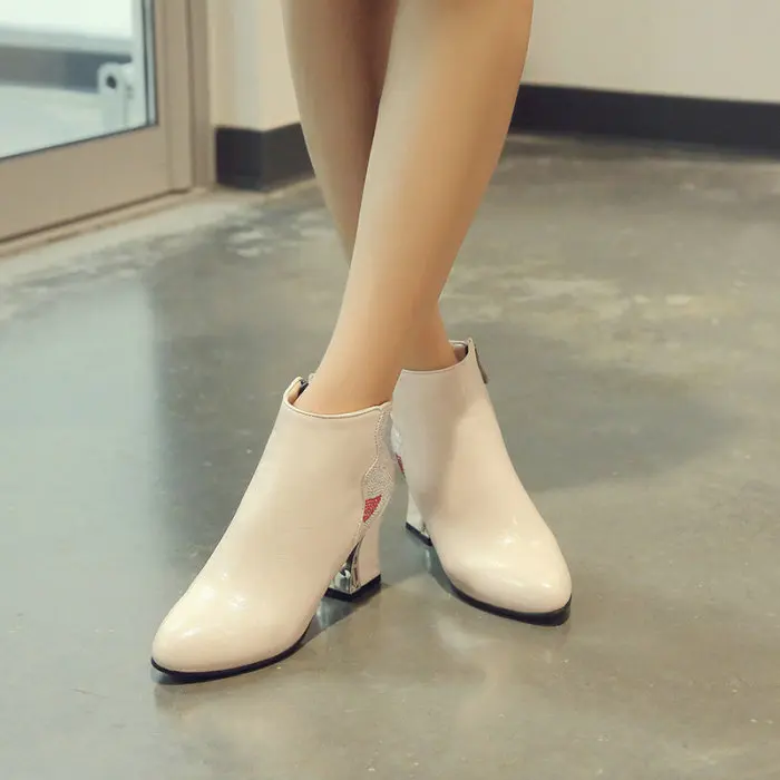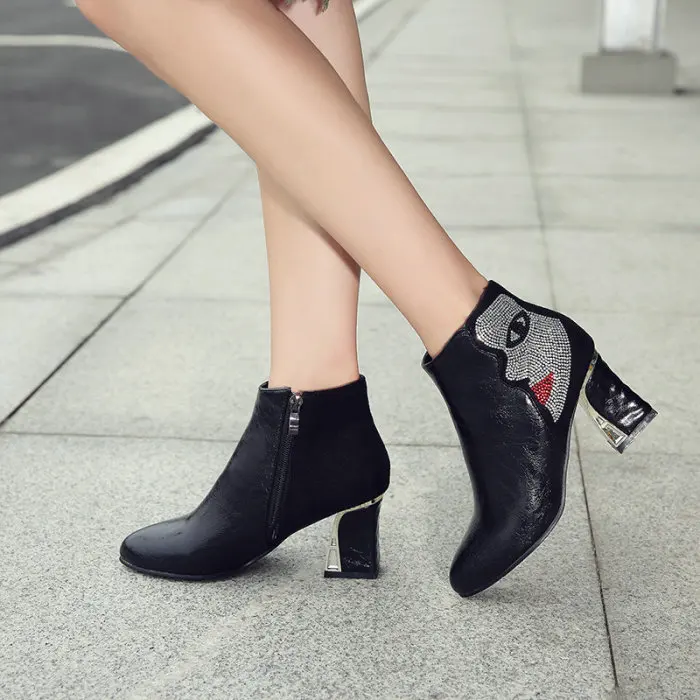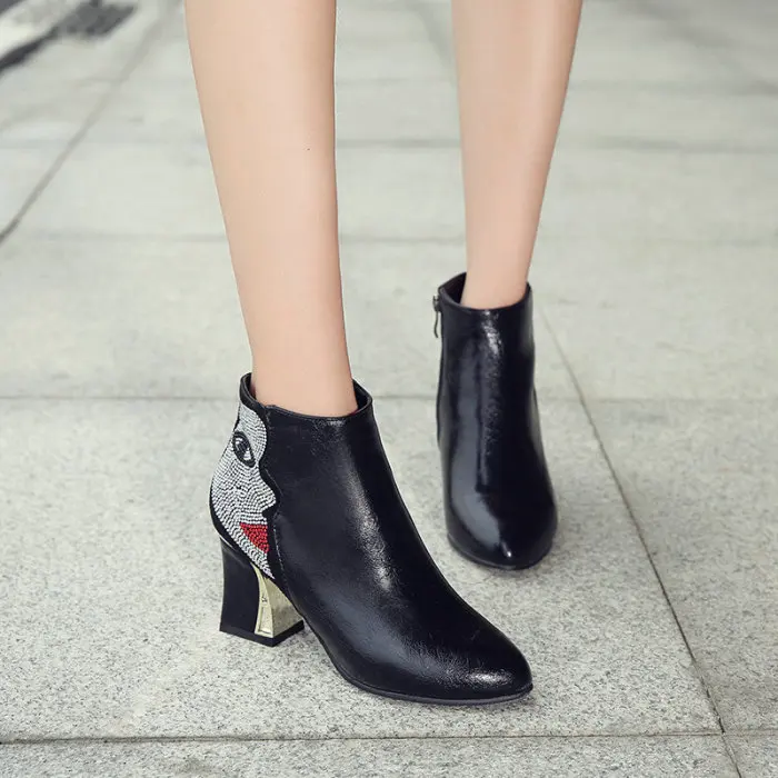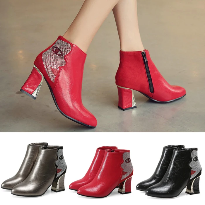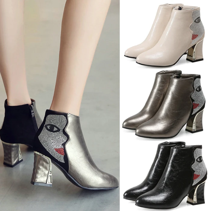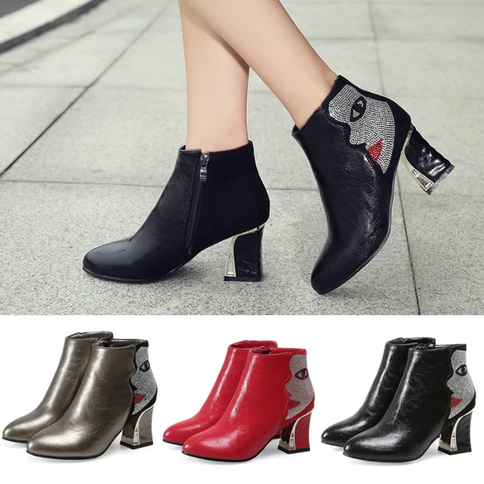 Лидер продаж; модные женские ботинки с высоким берцем; стразы; молния; обувь на высоком каблуке; сезон осень-весна-зима; HV99