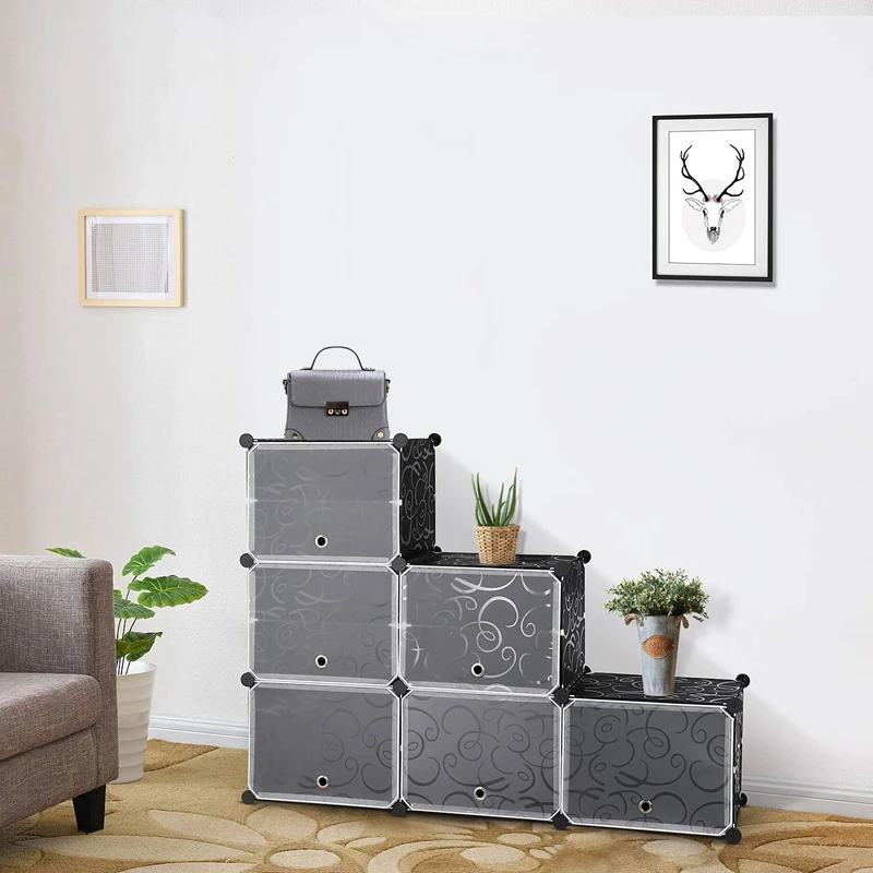 Эта квадратная сумка для хранения обеспечивает много места для различных туфель, одежды, компакт-дисков, книг, детских игрушек и многого другого. Стойка для хранения оснащена крючками для хранения некоторых других мелких предметов, таких как шляпы, сумки и полотенца. С гибким соединителем, все панели могут быть установлены в различных формах, которые вы хотите. Вы можете снять дверь и внутреннюю регулируемую полку в соответствии с вашими потребностями.