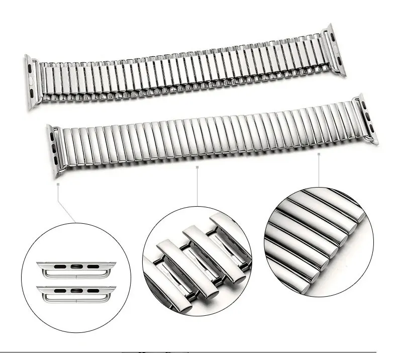 Описание: 1.100% новый бренд высокого качества 2. Свободно масштабируемый, идеально подходит для ваших часов 3. Изысканное мастерство и стильный дизайн 4. Идеально подходит в качестве подарка для ваших друзей и семьи. Спецификация -Длина: 15 см (нормальная) до 30 см (эластичная до максимальной) -Цвет: серебристый -Совместимость с: Для Apple Watch series 3 2 1 Посылка содержит: 1 браслет из нержавеющей стали (не включает часы)