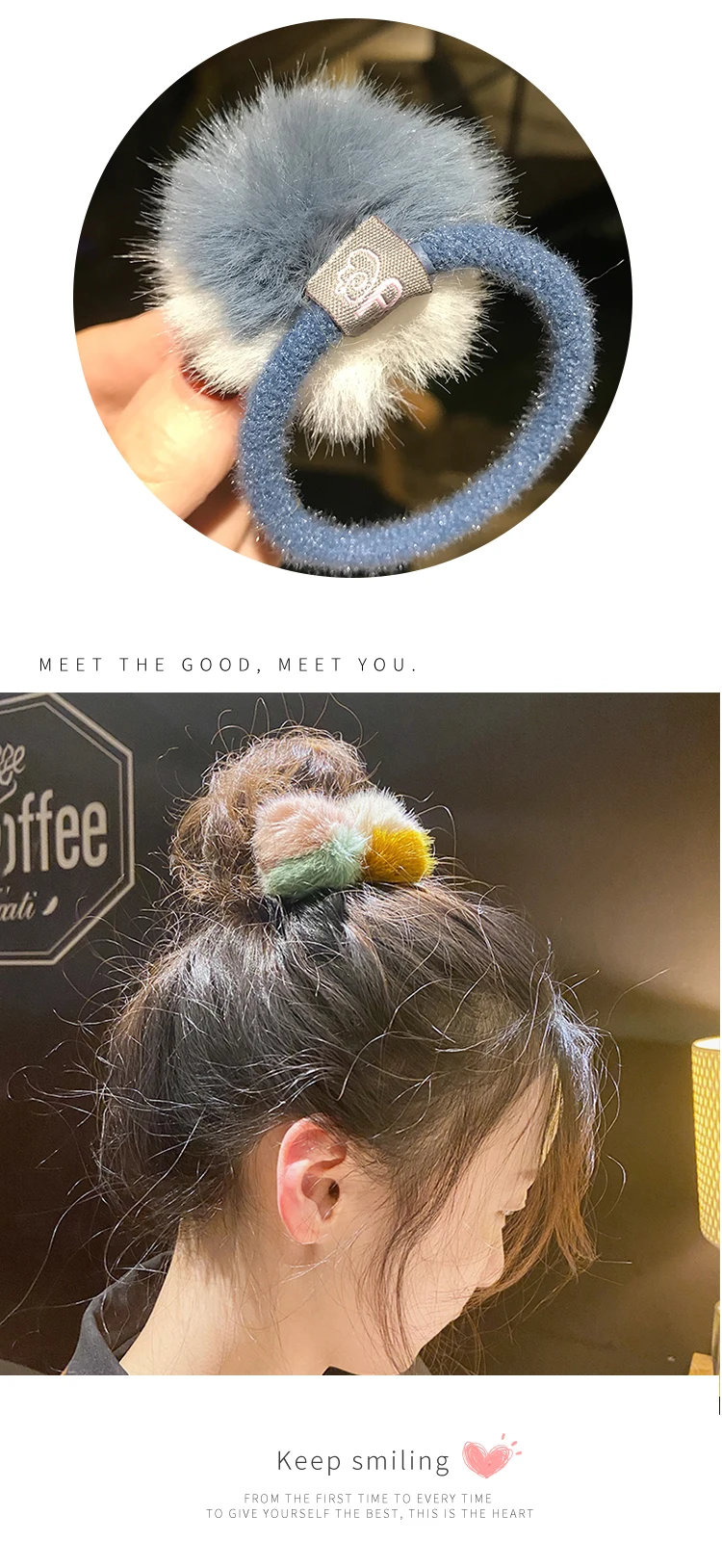 Двухцветные эластичные резинки для волос с плюшевыми шариками, держатель для конского хвоста, резинка для волос для женщин и девочек, резинки для волос, кольцо, резиновые аксессуары для волос, головной убор Размер: диаметр повязки для волос: около 6 см. Материал: плюш + резинка