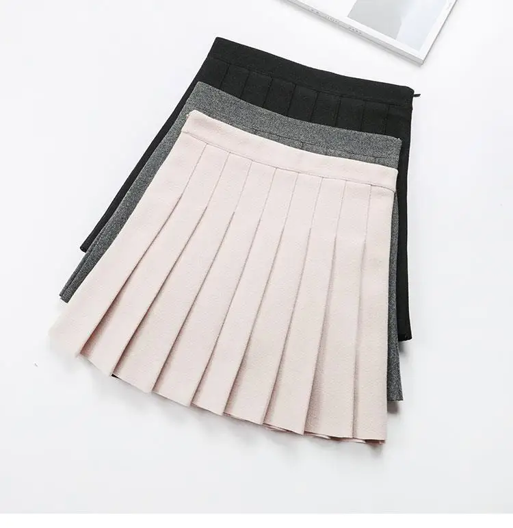Шерстяная мини-юбка, теплая зимняя мини-юбка плиссе, кавайная юбка, клетчатая юбка размера плюс, Корейская короткая юбка XL xs