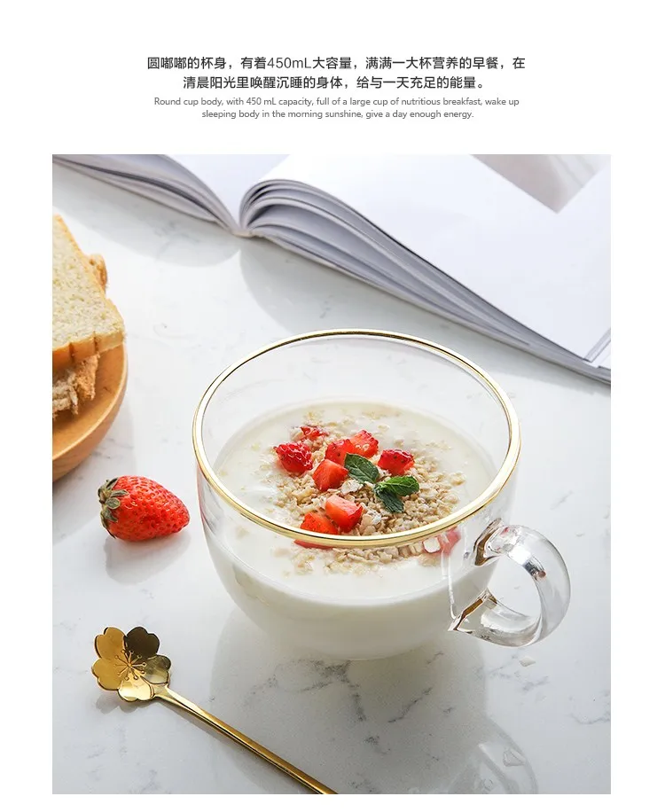 Золотая оправа стеклянная чашка для завтрака питьевая стеклянная es чайная чашка с ручкой кофейные чашки для эспрессо и кружки термостойкие вечерние для ресторана