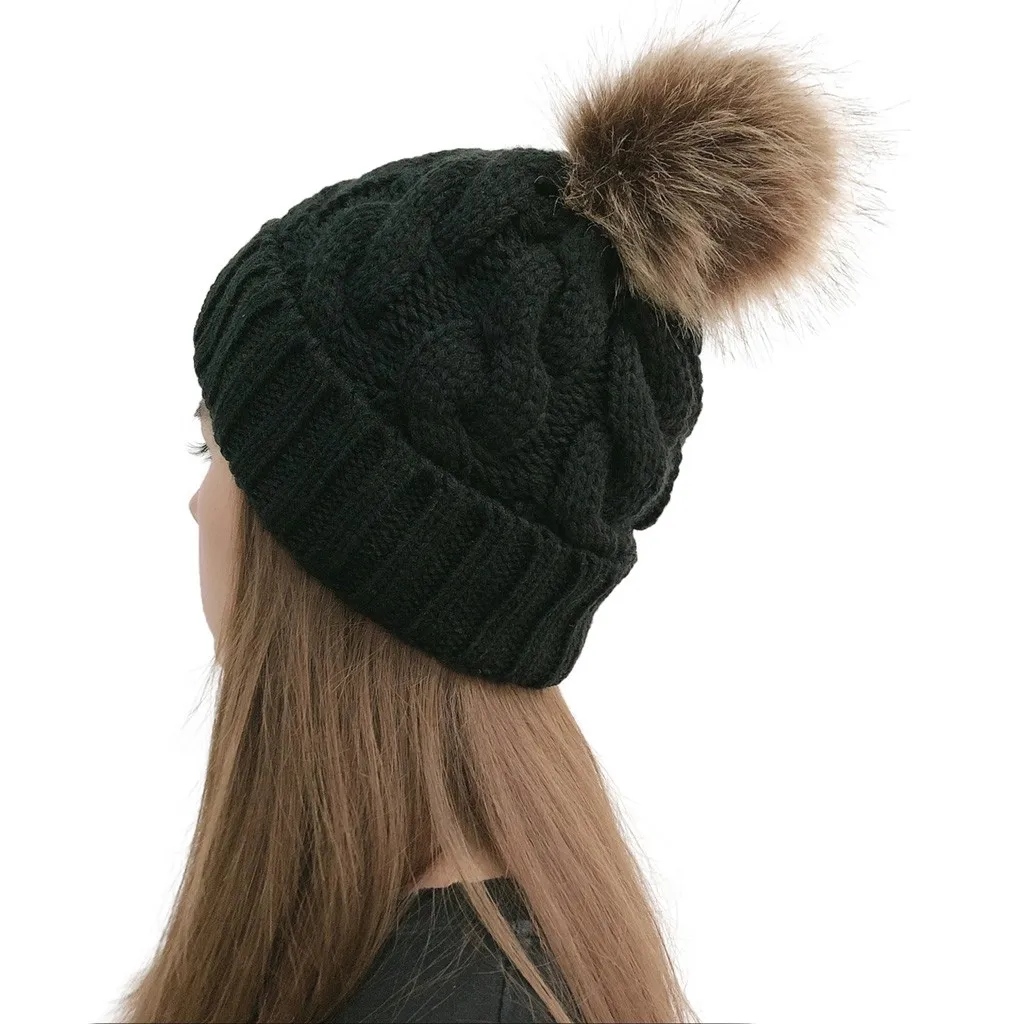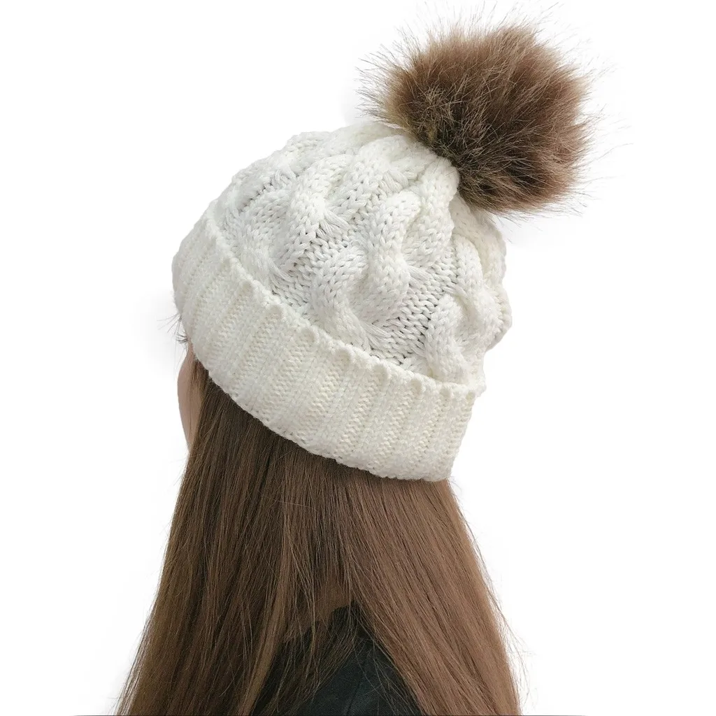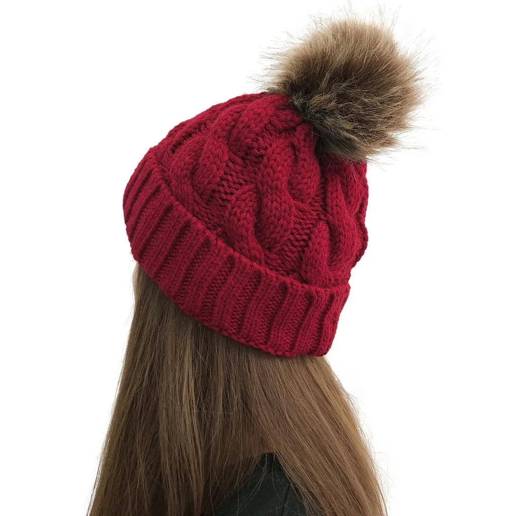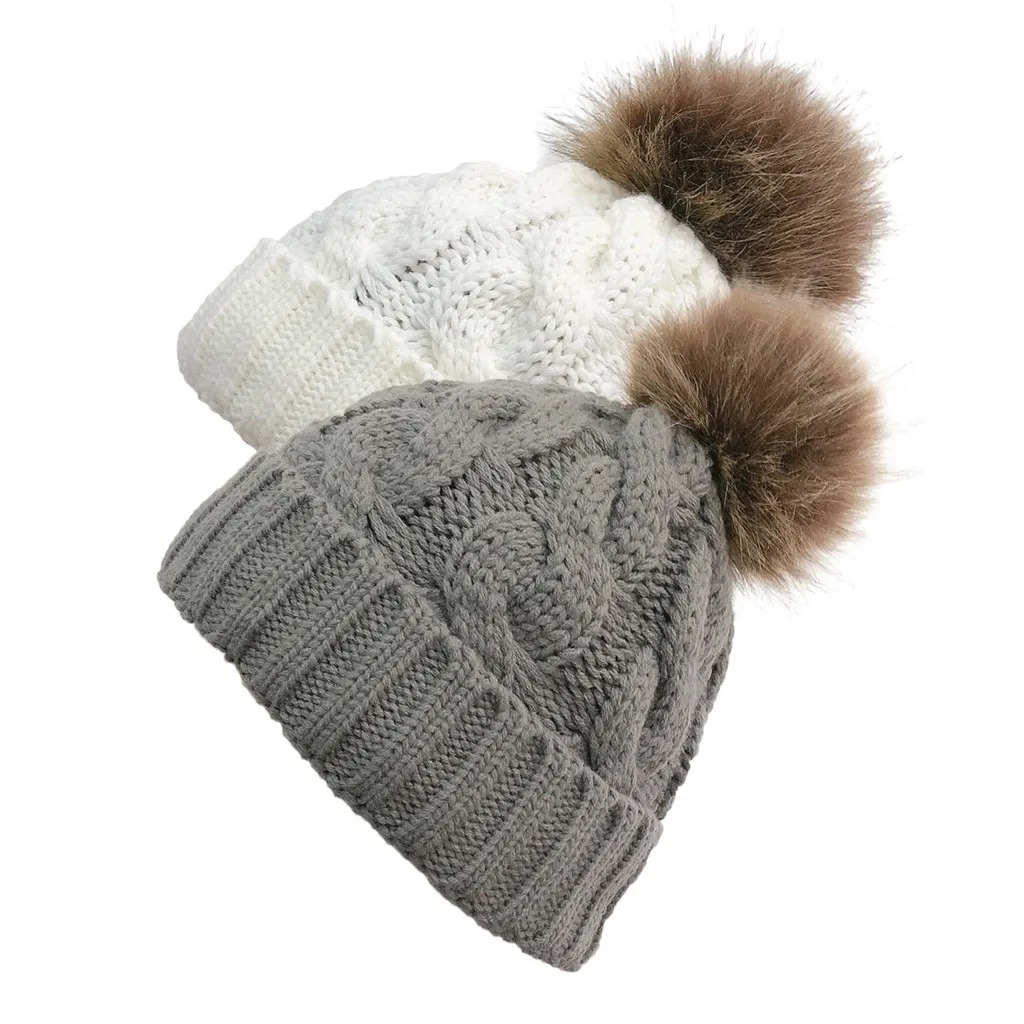 Женская Повседневная однотонная стеганая уличная плюшевая шапка с помпонами, Вязаная Шапка-бини
