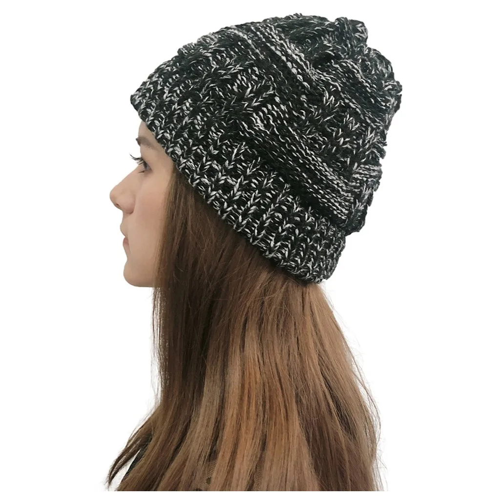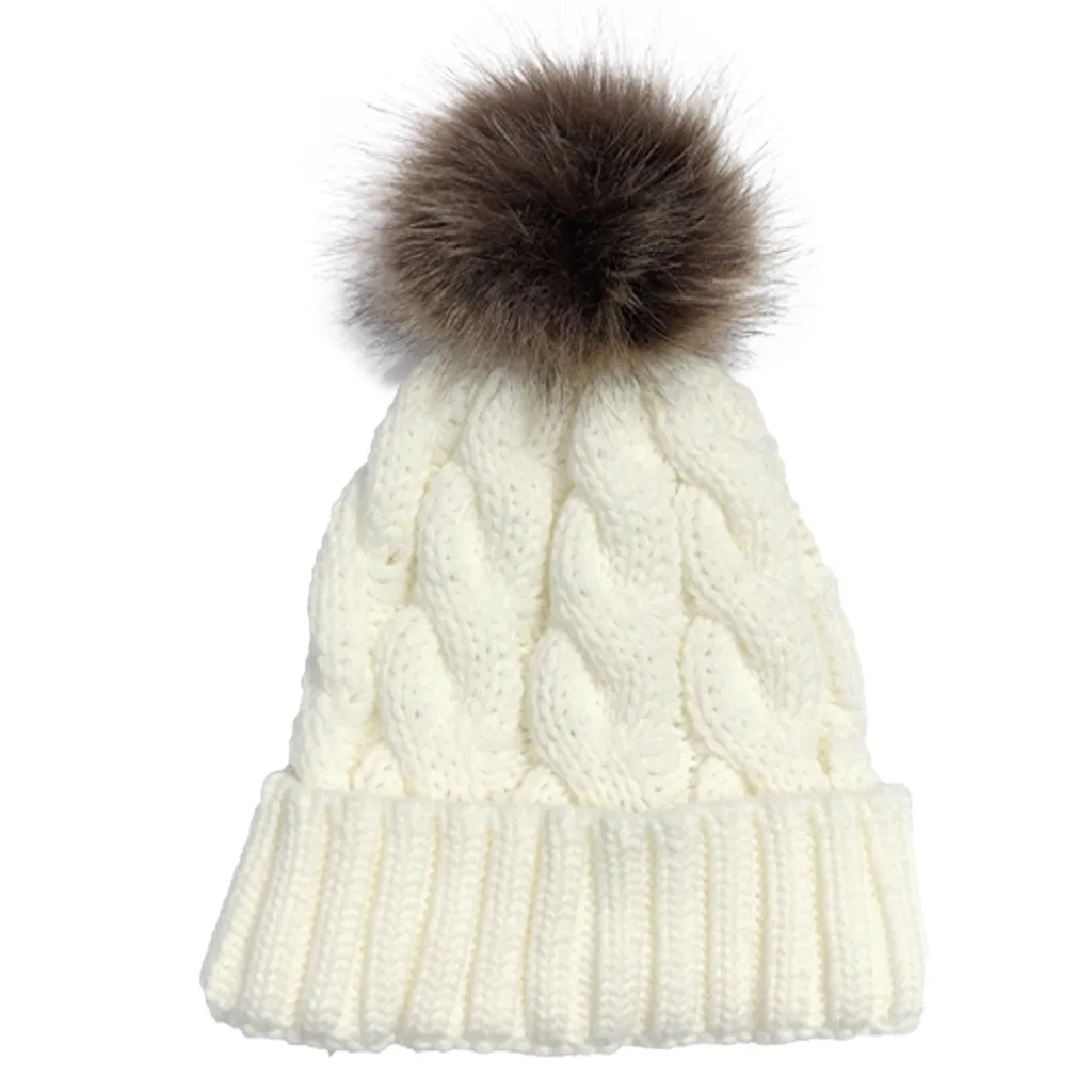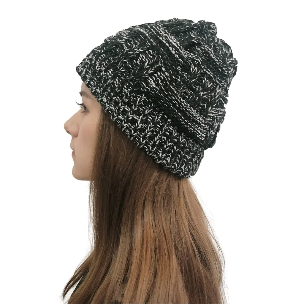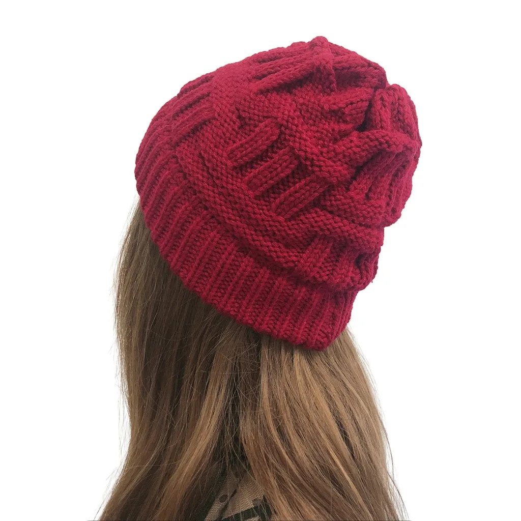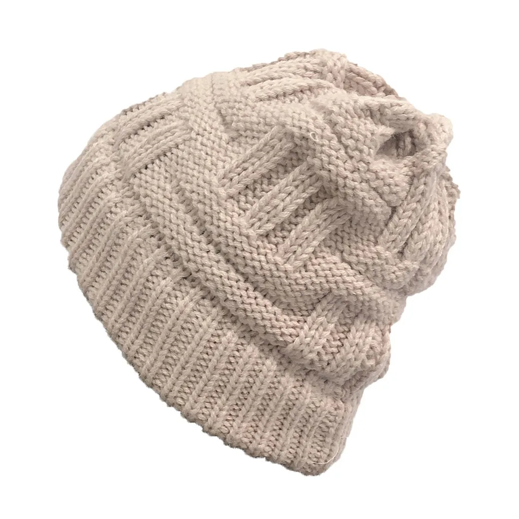 Женская Повседневная однотонная стеганая уличная плюшевая шапка с помпонами, Вязаная Шапка-бини