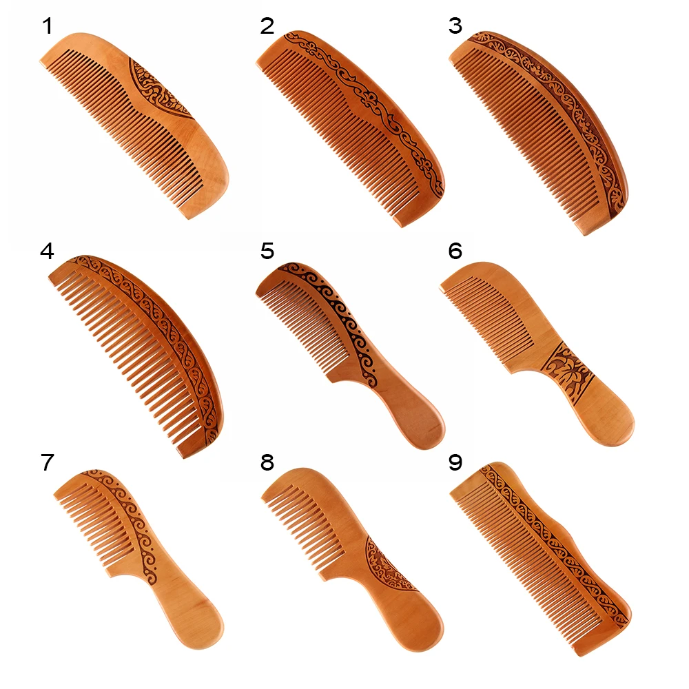 1 PC 2019 Natural Peach Wood Handcrafted Fine Tooth Comb Anti-Static Head Massage Beard Classic Comb Hair Styling Hair Care Tool