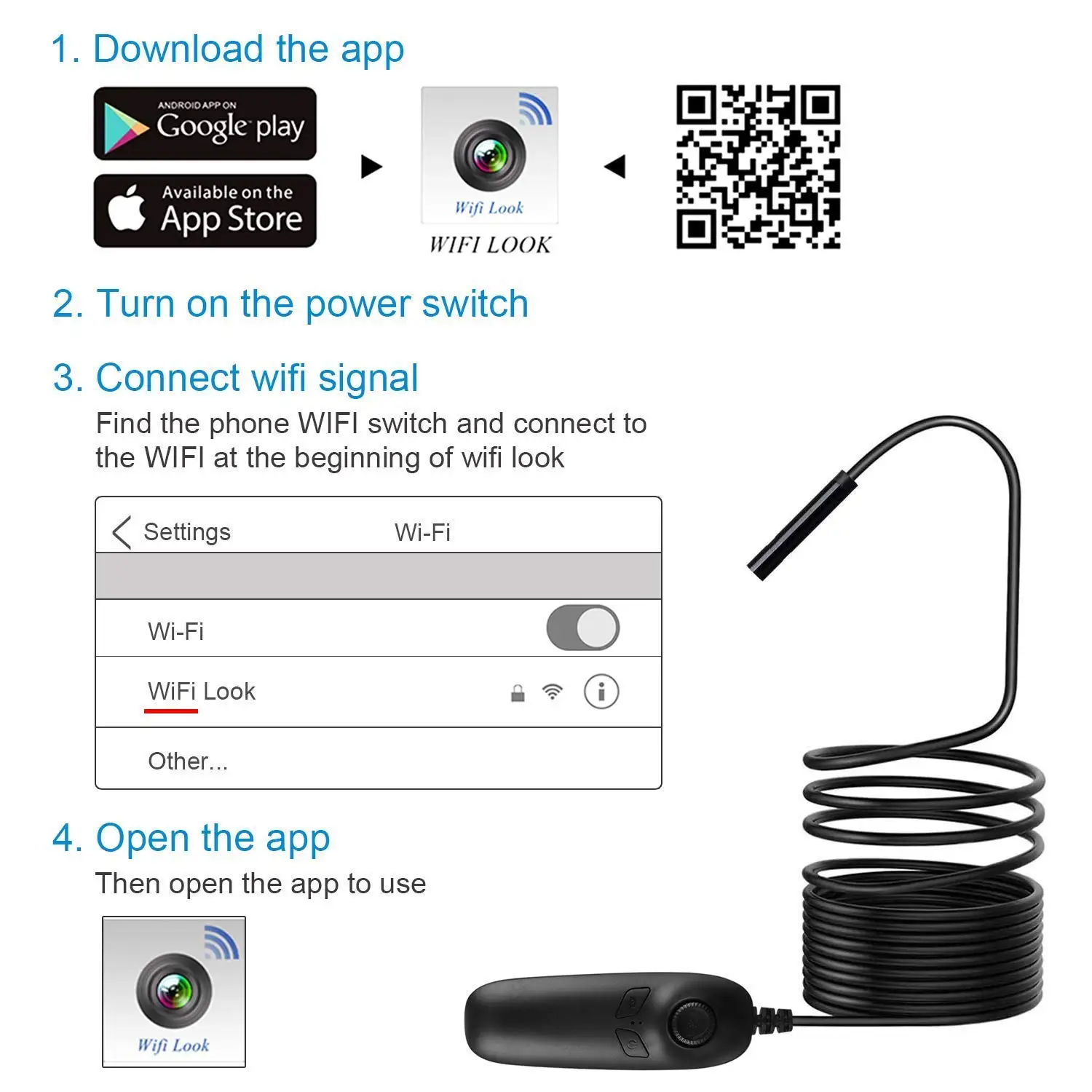 【Уникальный 8 синий светодиодный светильник s】: с 8 регулируемых синий светодиодный светильник s камеры наконечник, он значительно повышает яркость и четкость изображения даже в темноте или с низким уровнем светильник состоянии. Эндоскоп Wi-Fi 1200P обеспечивает вам прекрасный опыт записи четкого широкополосного HD-видео в формате MP4 и достаточно четкое изображение моментального изображения в формате JPG с 3 регулируемыми разрешением 640x480, 1280x720,1600x1200. [Чипсет камеры премиум класса] водонепроницаемый беспроводной Эндоскоп оснащен чипом второго поколения при 30fps, что лучше всего подходит для получения самого гладкого видео и изображения. Если вы ищете надежный эндоскоп Wi-Fi для проверки трубопроводов, настенных щелей, канализационных труб, проблем с тросом, этот беспроводной Эндоскоп-именно то, что вам нужно. Дополнительная телескопическая штанга помогает закрепить эндоскоп, чтобы вы могли смотреть дальше. 【 3,5 м кабель, Водонепроницаемый и 8 мм Диаметр Камера 】: Полужесткий беспроводной эндоскопическое исследование Камера кабель может точно изгиб или держать его, чтобы получить доступ к широкому различные изогнутые отверстия или труб. Благодаря водонепроницаемой функции IP67, беспроводной Эндоскоп может быть широко использован для проверки подводных и ванных трубопроводов, проверки стен, утечки воды, блокировки и т. д. [Новейший эндоскоп Wi-Fi]: Эта беспроводная Инспекционная камера работает с смартфоном Android (Android выше 4,2) и системой iPhone iOS (iOS выше 7,0), не используя дополнительный адаптер или кабель, его можно легко подключать к смартфону через Wi-Fi. [Эргономичный дизайн премиум-класса]: с промышленным дизайном, изящной ручкой, матовой поверхностью и превосходным переключателем на спиральный светильник, камера для осмотра эндоскопа Wi-Fi более комфортная и подходит для долгой работы и отвечает различным требованиям яркости, более удобное решение различных проблем Подключение к Интернету для загрузки программного обеспечения 1 * Wi-Fi камера для проверки 1 * зарядный кабель 1 * телескопический стержень 1 * зеркало 1 * магнит 1 * крюк Полужесткая Инспекционная камера 1200P HD 2 мегапикселя, 1200P HD камера позволяет HD четкое точное видео и фотографии. Вы можете использовать этот бороскоп Wi-Fi для записи видео и фотографирования. Есть 3 разных разрешения (1600x1200, 1280x720, 640x480), вы также можете переключаться. 8 регулируемый светодиодный светильник 8 мм Полужесткий эндоскоп камера зонд имеет 8 регулируемый светодиодный свет вокруг камеры, так что вы можете чётко видеть изображение, несмотря в темных местах. Вы можете регулировать яркость и нажимать кнопку камеры через Wi-Fi, что очень удобно Высокая Ёмкость Батарея Встроенный 900 мАч литий-полимерный аккумулятор, эндоскоп работает с погрешностью в пределах 2-3 ч без светодиодный горит огоньков, который будет огромное преимущество на рынке, особенно для Wi-Fi, эндоскопическое исследование камеры. IP67 Водонепроницаемый Головка камеры имеет степень водонепроницаемости IP67, что позволяет использовать ее во время влажных, влажных или даже подводных работ, например, для проверки канализационных труб и трубопроводов. Мощный чип, свободное видео в реальном времени Новейшая частота вращения 30 кадров в секунду вибрирует записанные изображения и видео, что показывает плавные процессы фотографирования и записи видео и позв